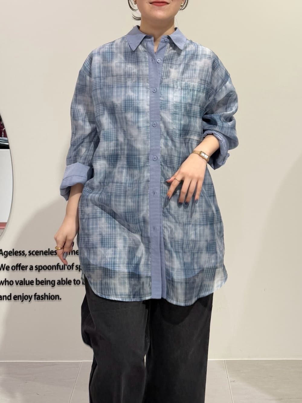 シアーチェックレイヤードシャツ