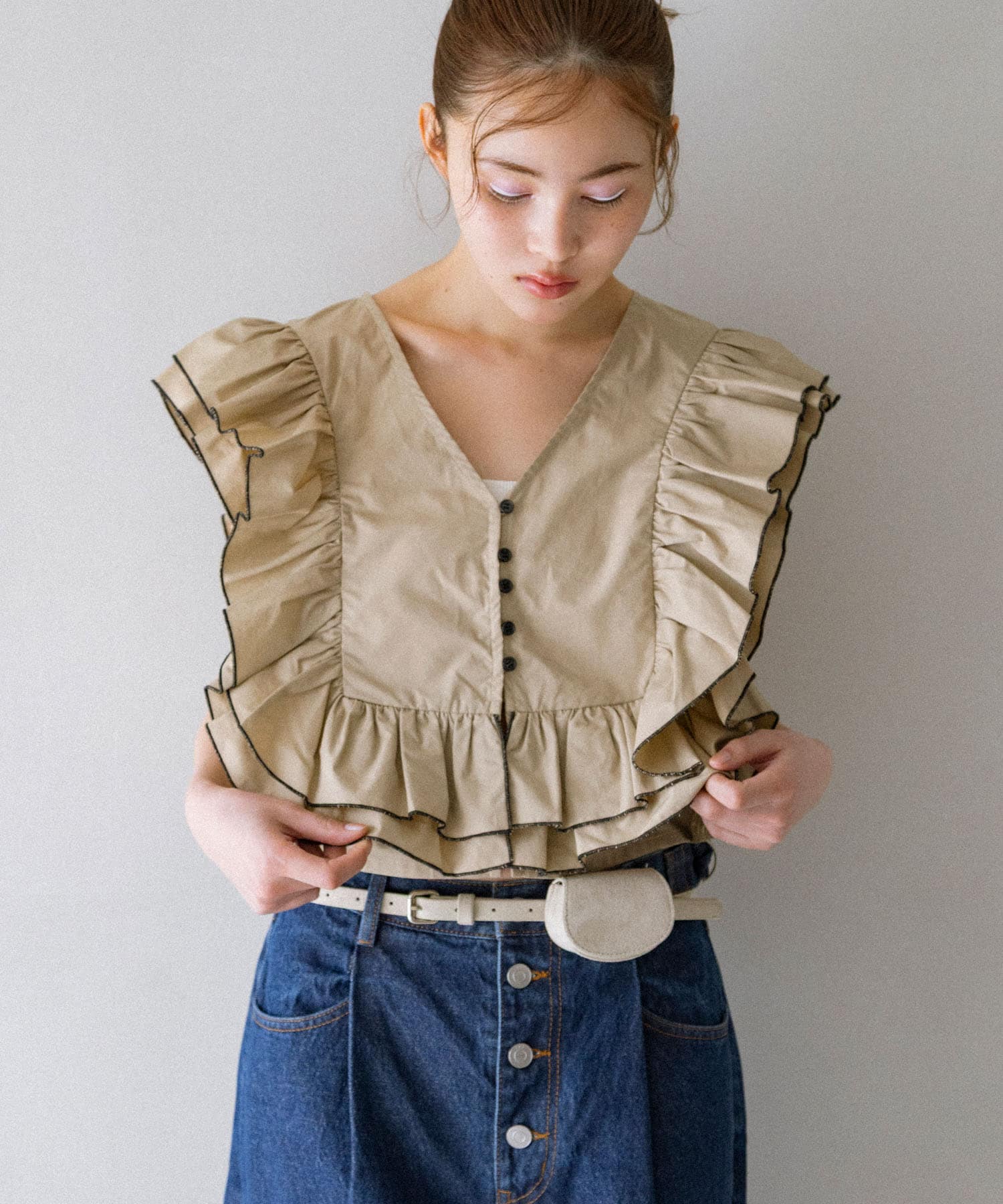 KBF2WAYバイカラーフリルブラウス- カラー: