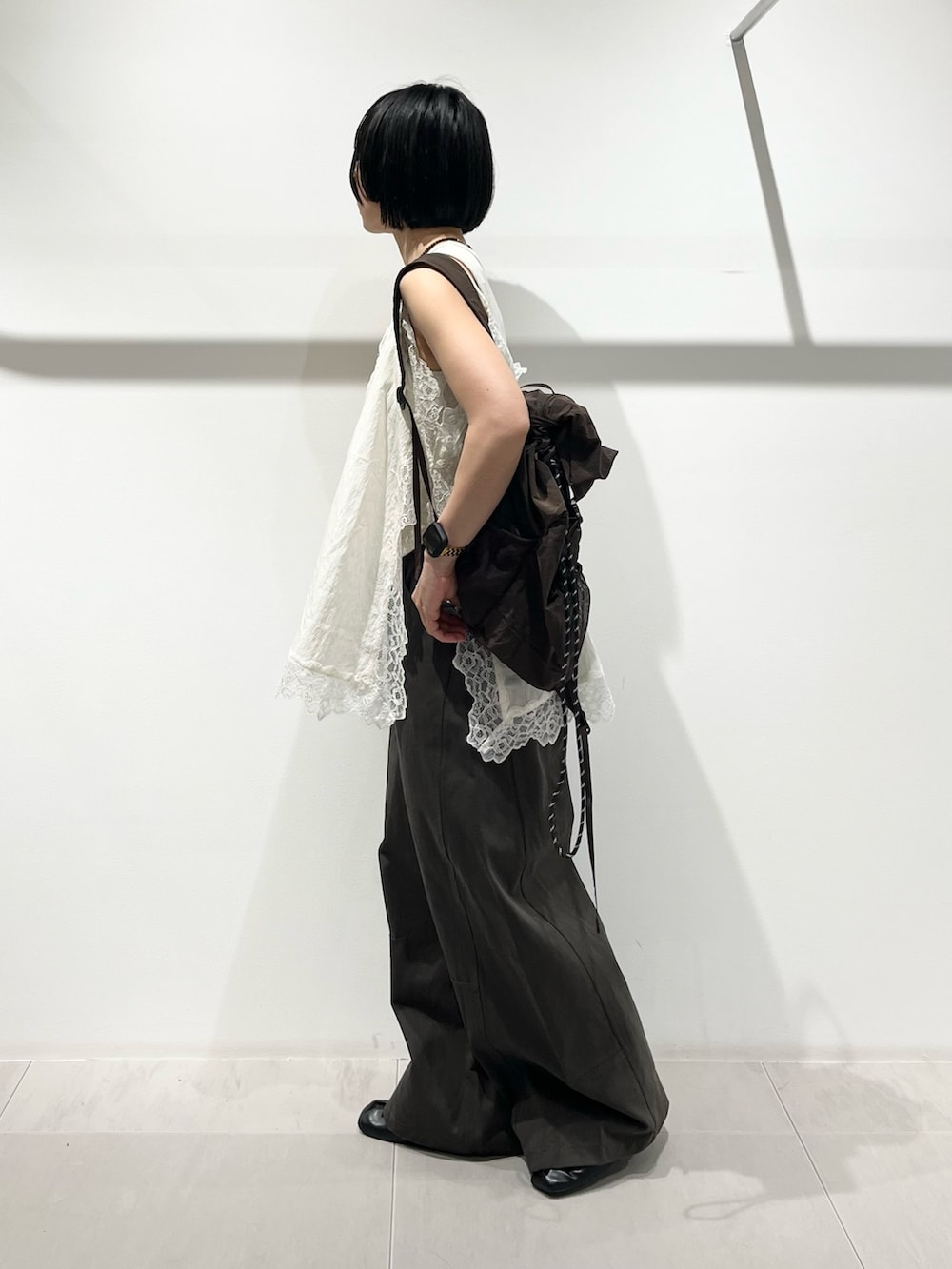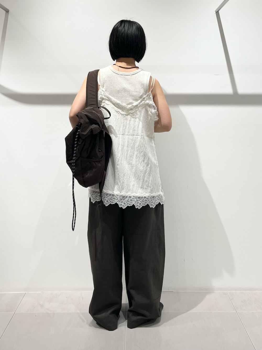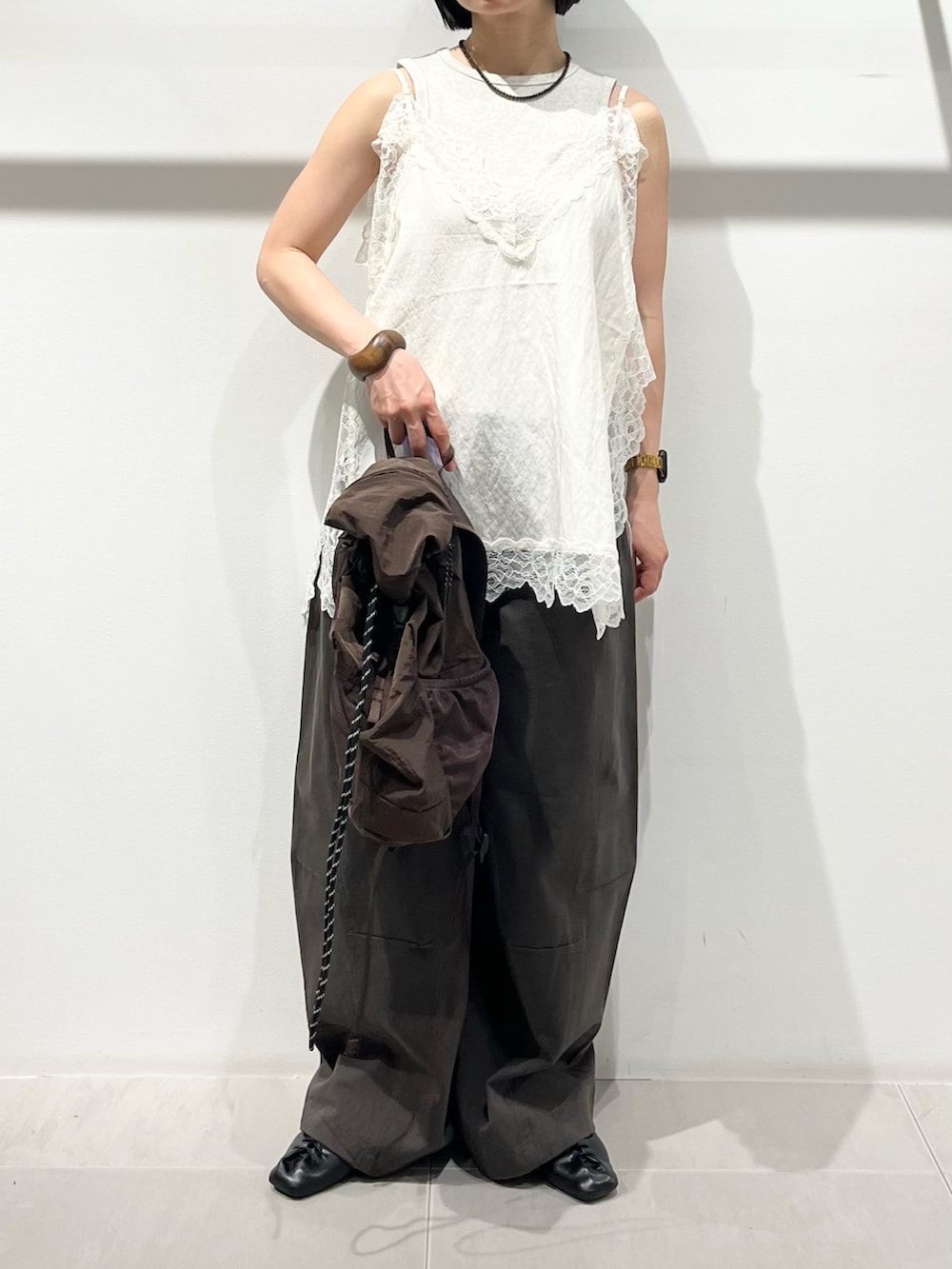 再入荷したレースキャミを夏らしくタンクトップで合わせました。