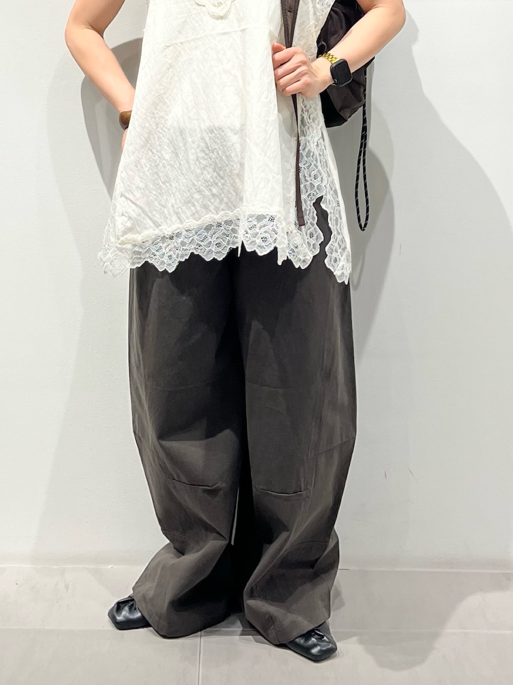 ボトムはチャコールで締めます!