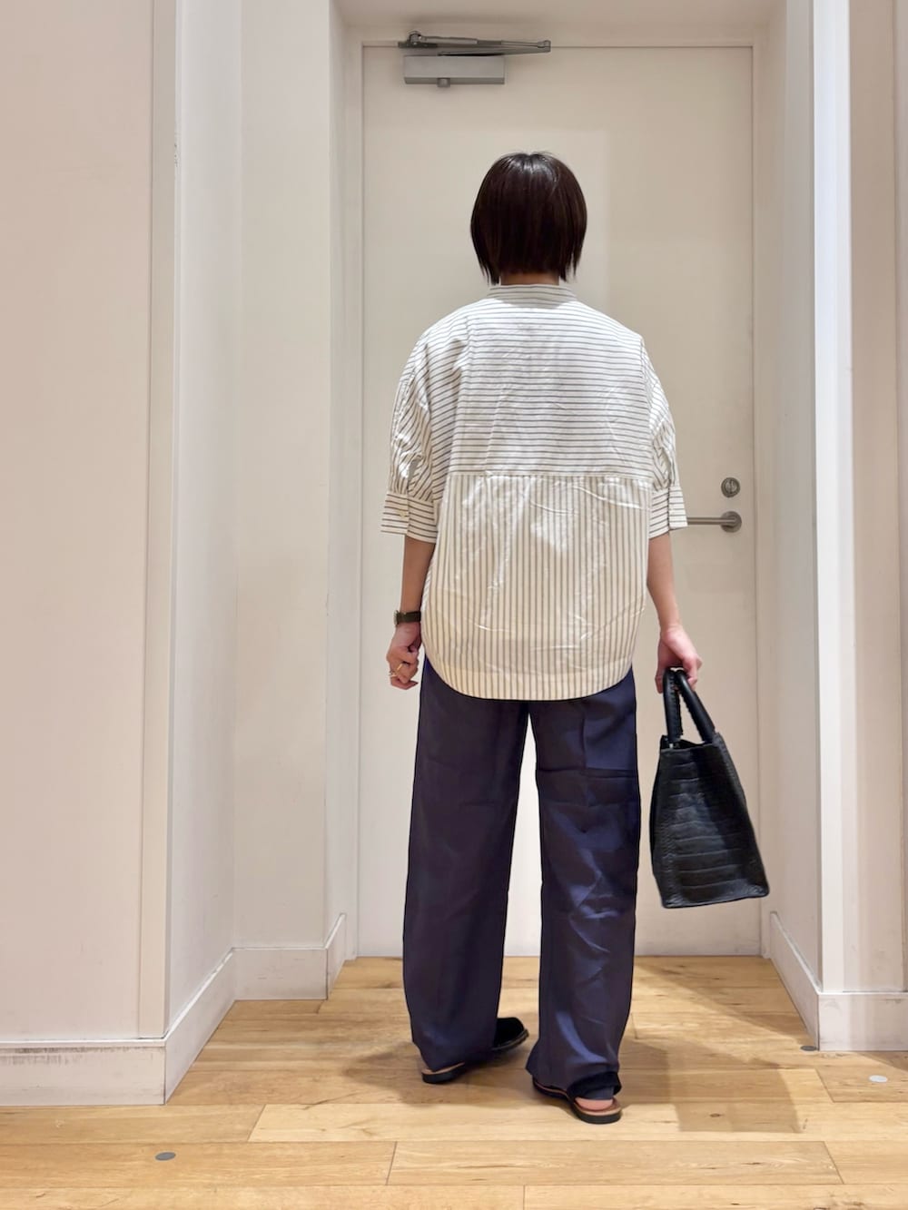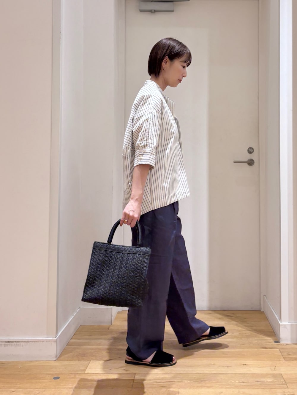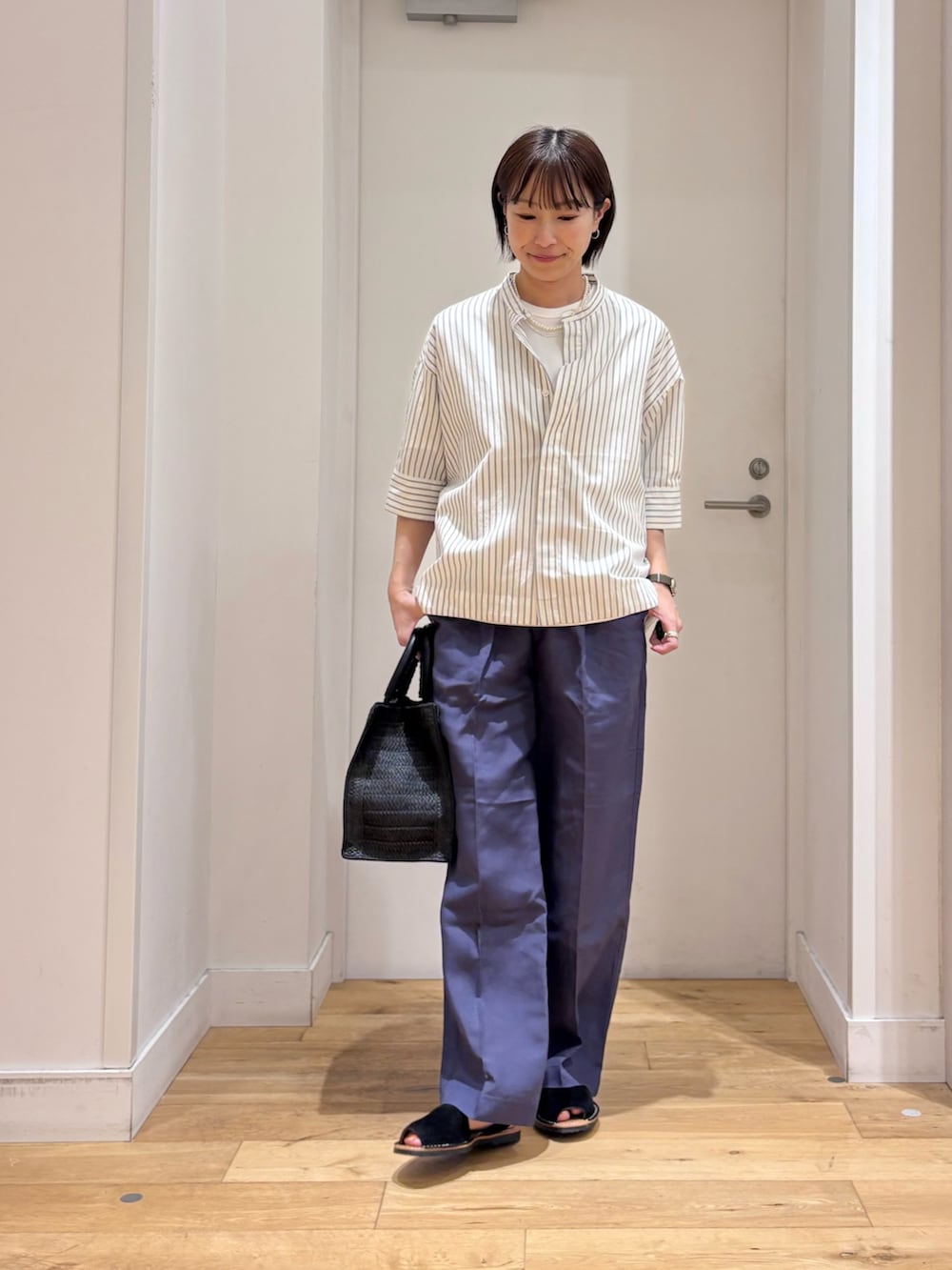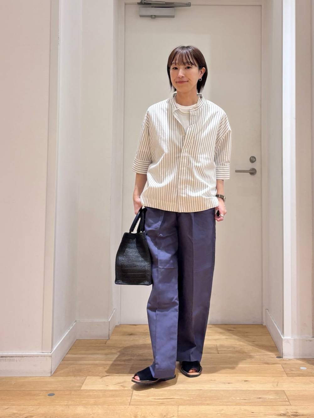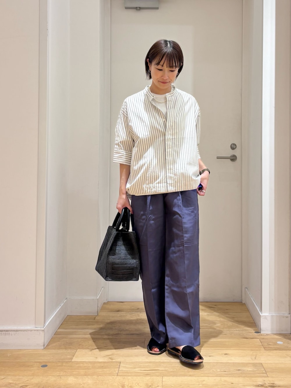 シャツは、ドルマンスリーブ+コクーンシルエットで通気性もよく、暑くなる時期にも快適です!