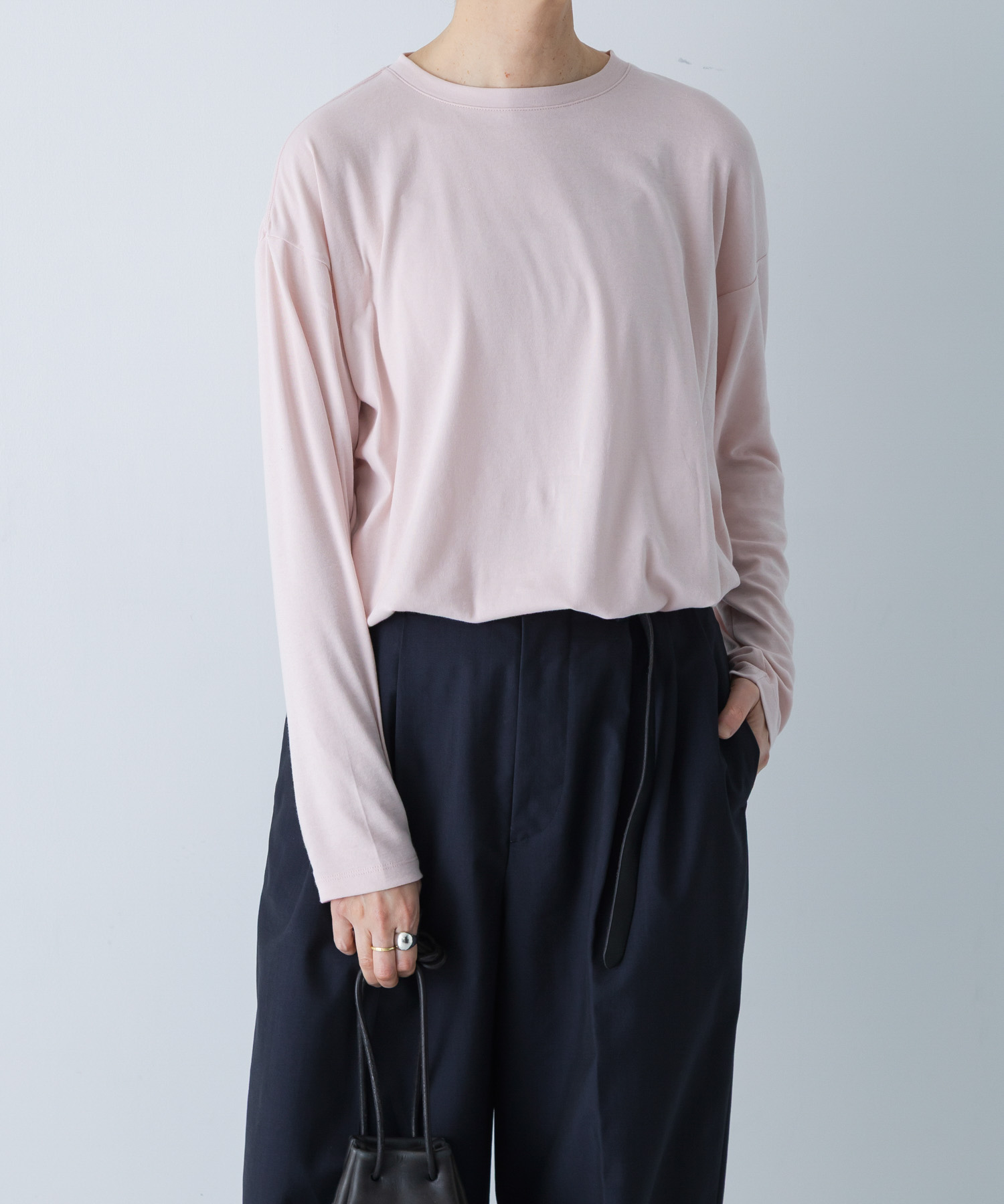 インナーはドライな肌触りと伸縮性、柔らかな風合いが特徴のカットソーです。コーディネートに遊び心を添えるカラー展開で、今回はピンクを選びました。