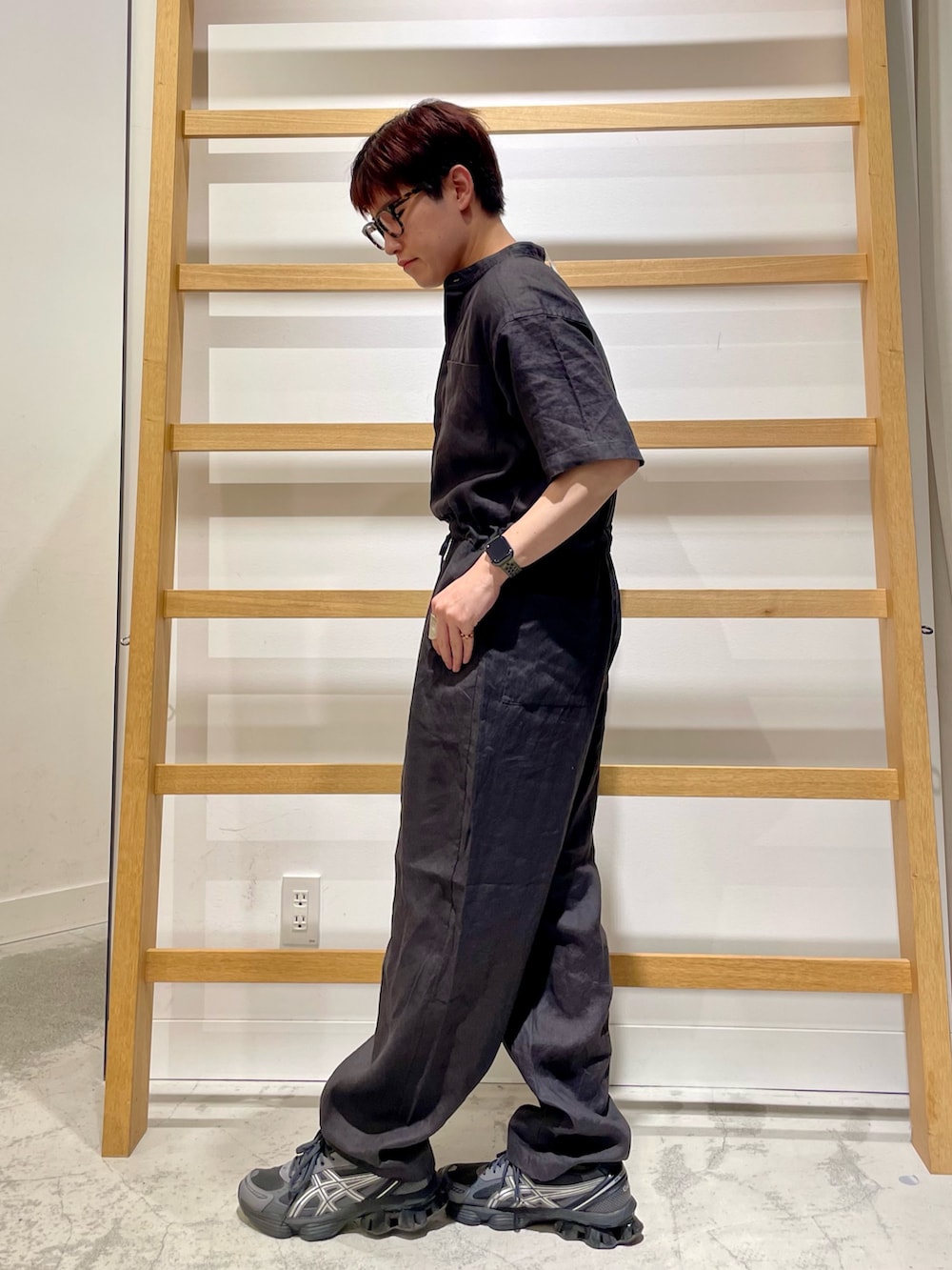 かぐれのリネンハーフスリーブオールインワンは1枚で簡単にコーディネートが完成するアイテムでゆったりとしたサイズ感なので楽に着用いただけます✨️
