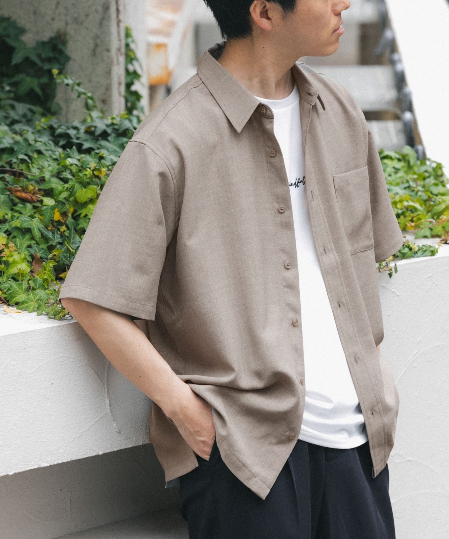 『接触冷感/吸水速乾/イージーケア/UVカット』クイックドライリネンタッチ半袖シャツ