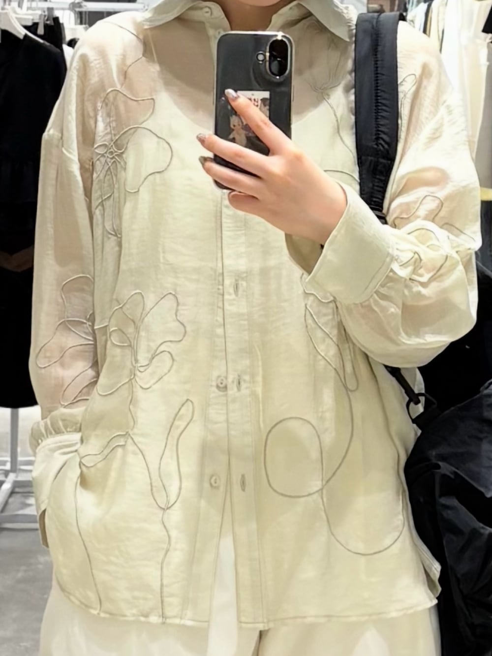 柔らかい素材とさりげないシアー感、そしてラインの刺繍デザインが高級感のあるスタイリングにしてくれます。