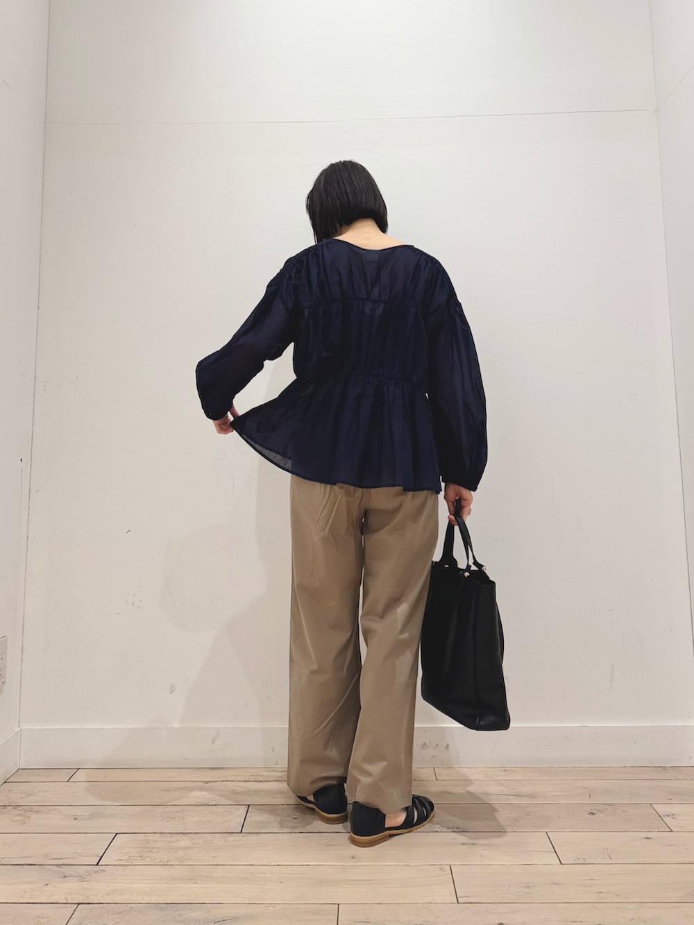 軽やかな印象でそのままVネックのブラウスとしてはもちろん、前を開けてかわいらしいシルエットの羽織としてもおすすめです☺️