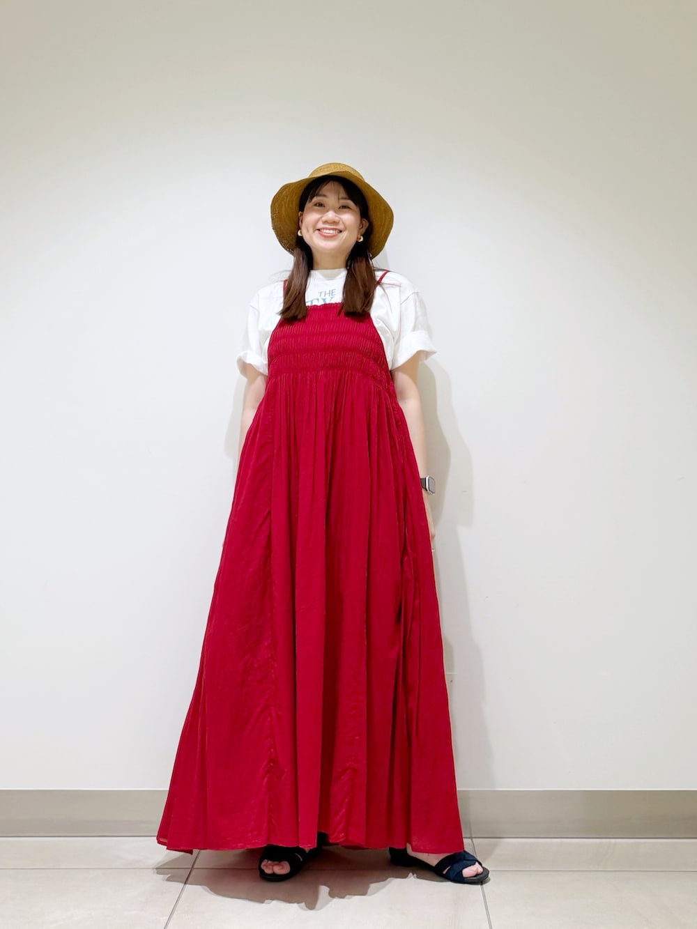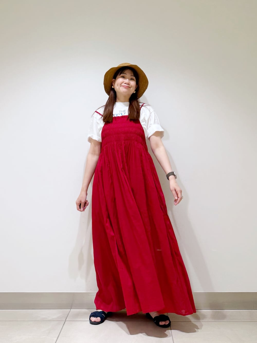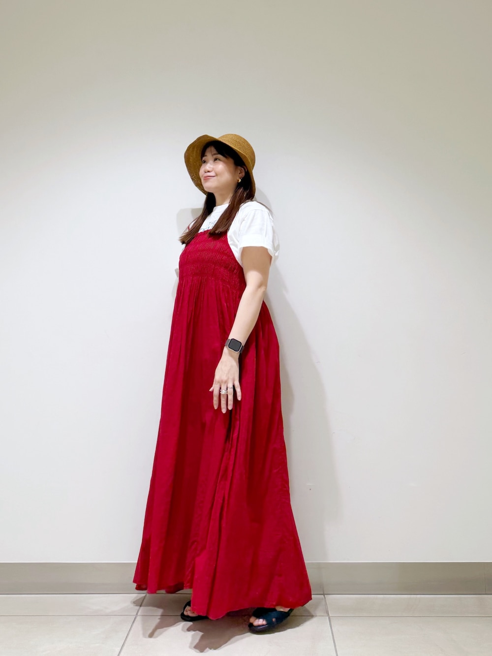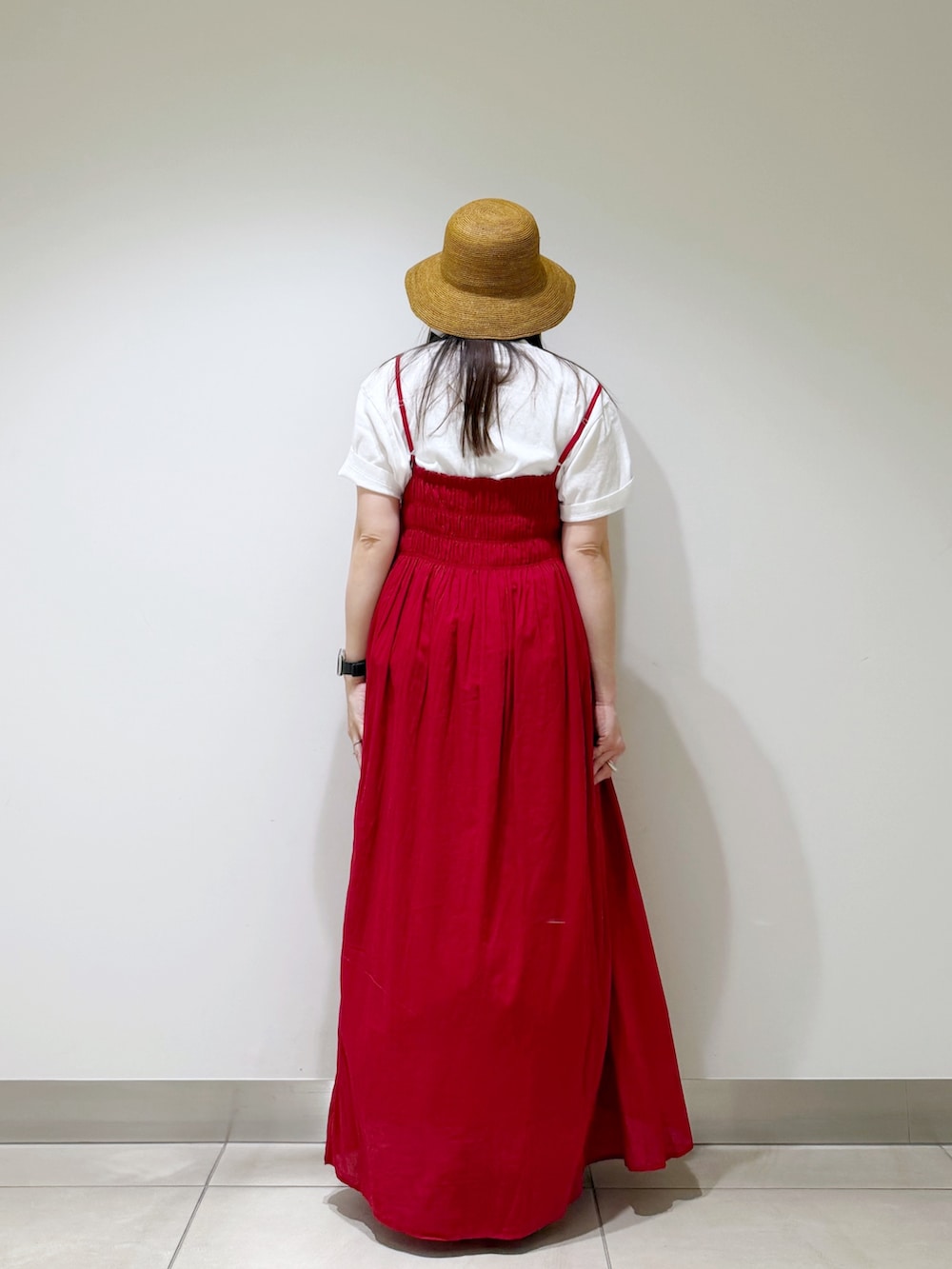 赤色がとっても目を惹くキャミワンピースを着ました☆