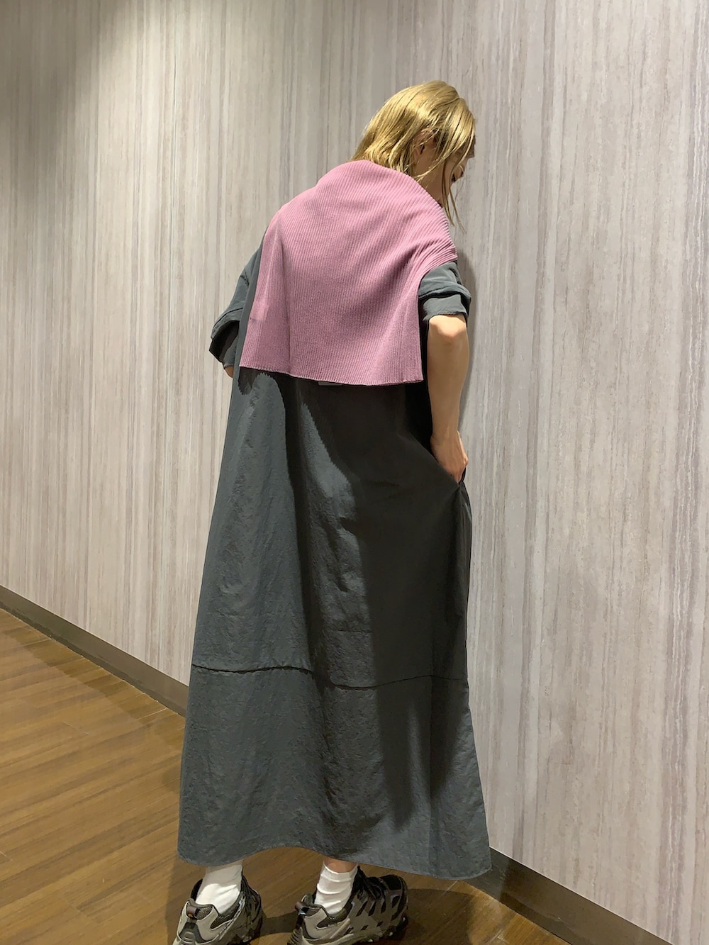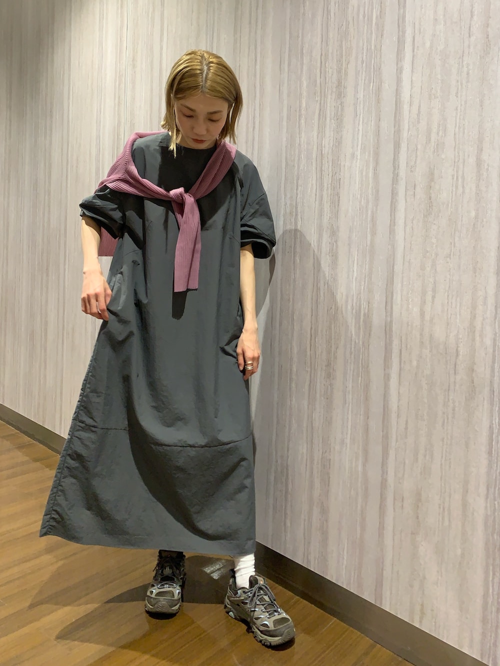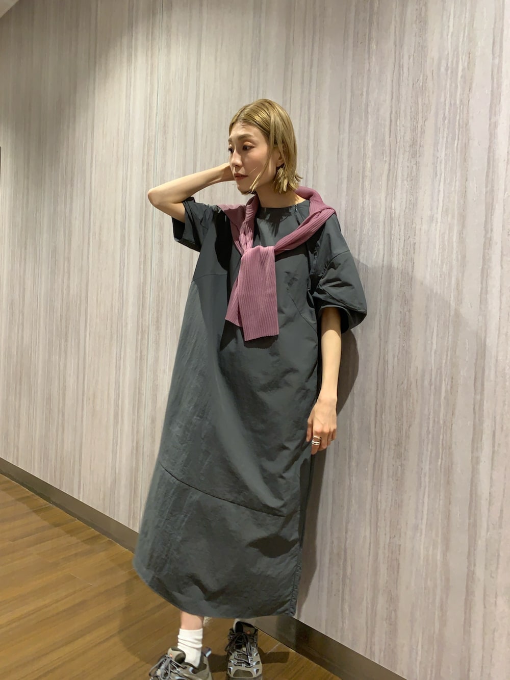 差し色に使っているのは、シアーで重ね着にもオススメ!