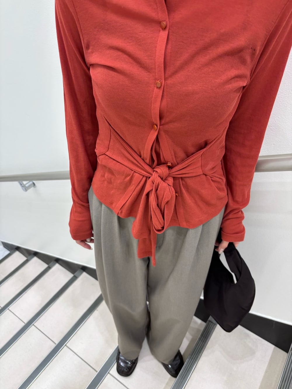 ノットデザインシアートップスはボタンを閉めるとより細身のシルエットに変更していただきます☺️