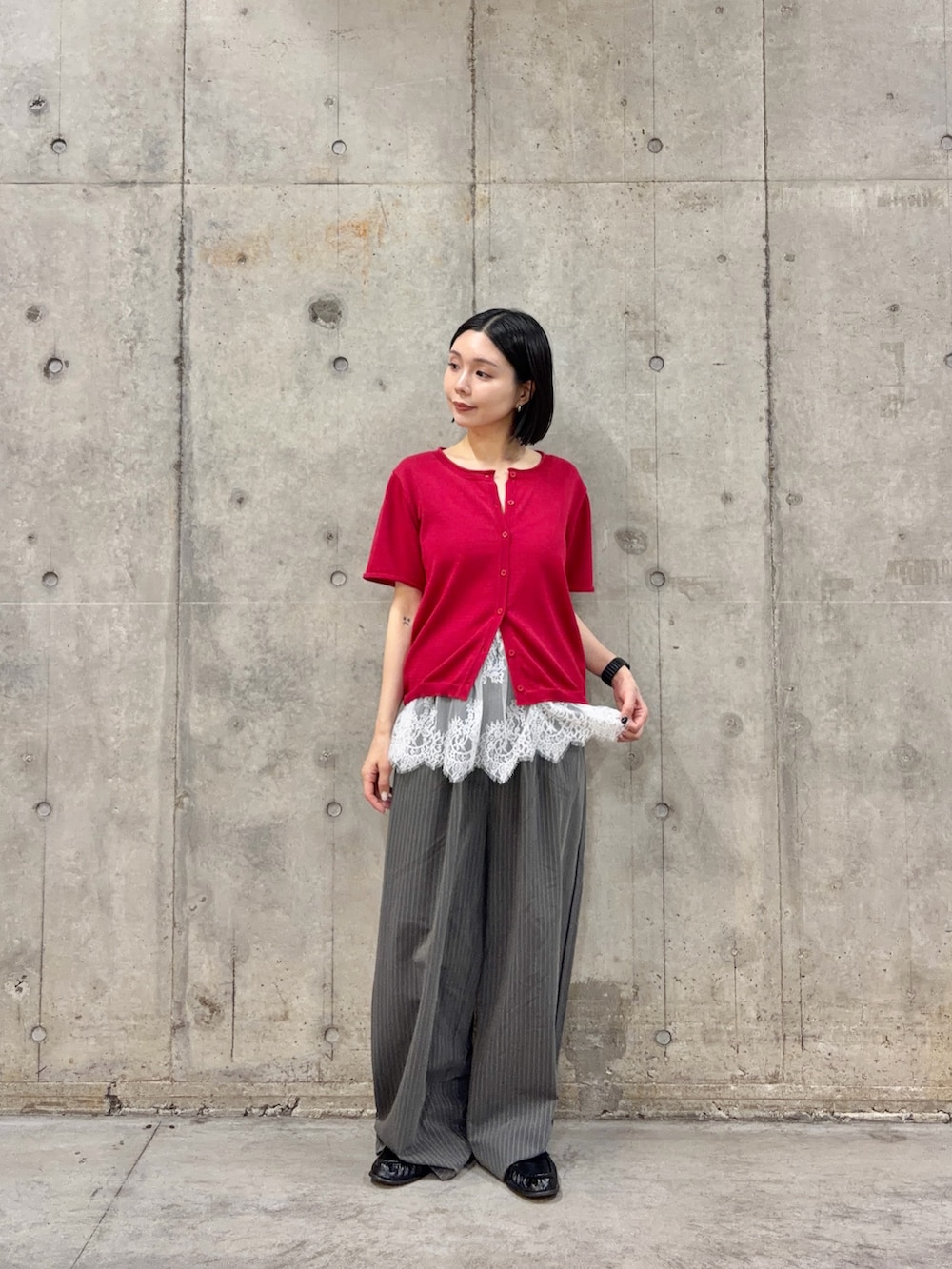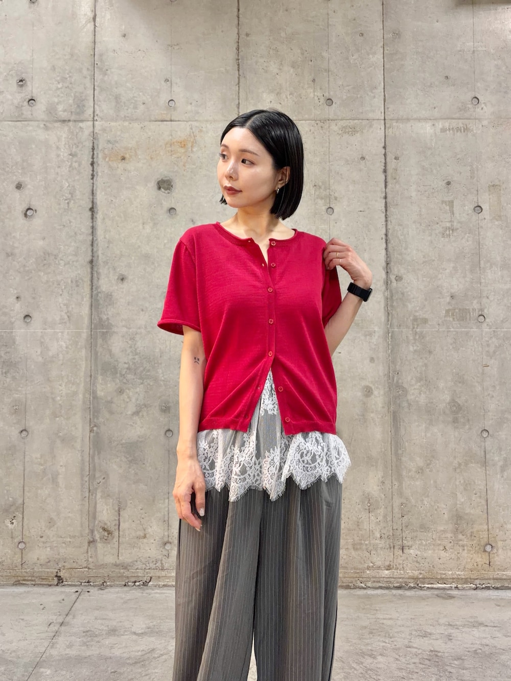 トレンドのlaceアイテムとレイヤードしました。