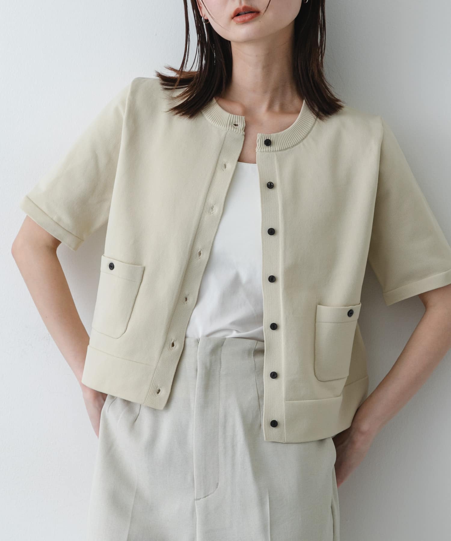 SENSE OF PLACE『洗濯可』ポケットツキハーフスリーブカーディガン- カラー: