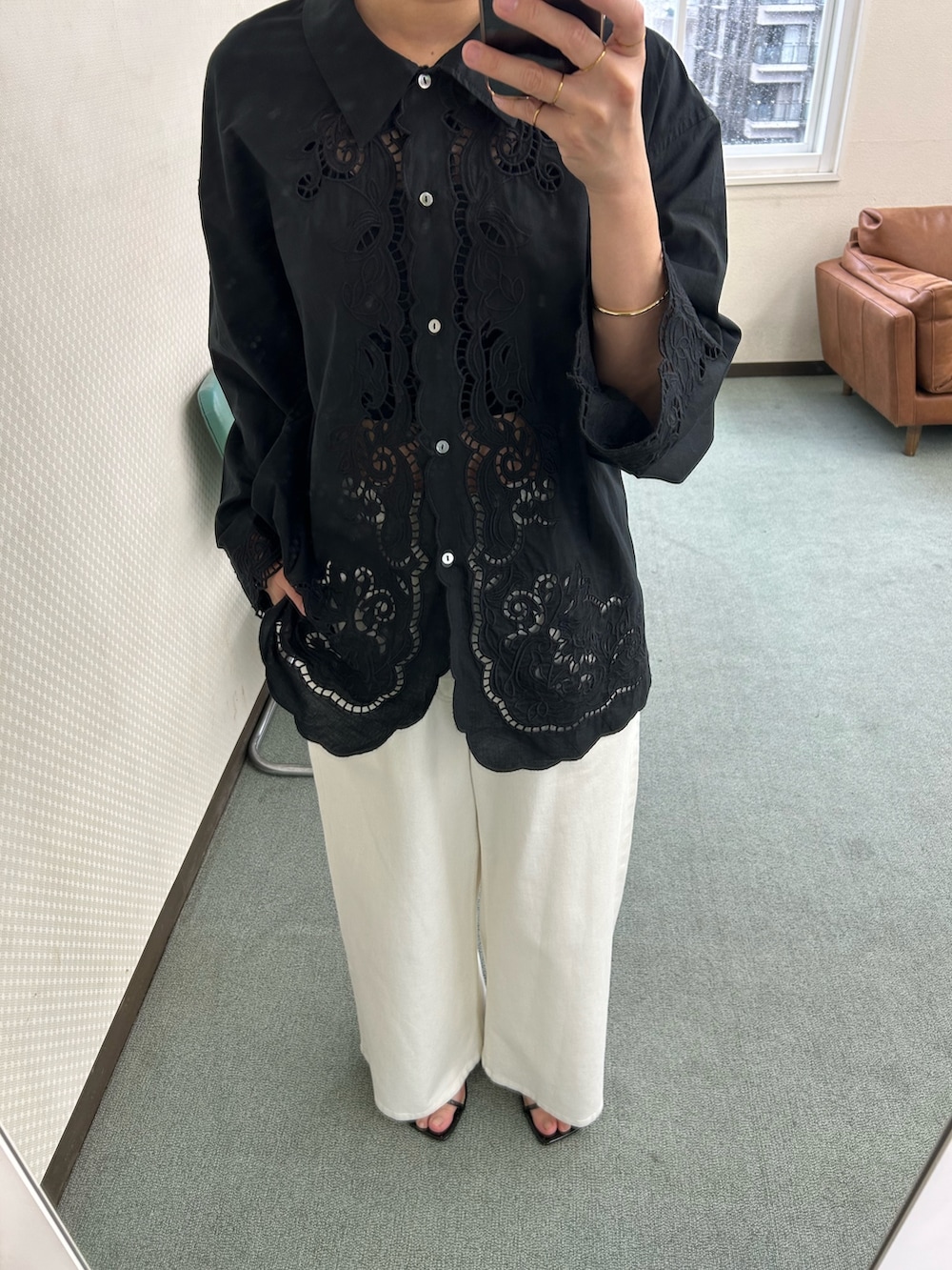カットワーク刺繍シャツ