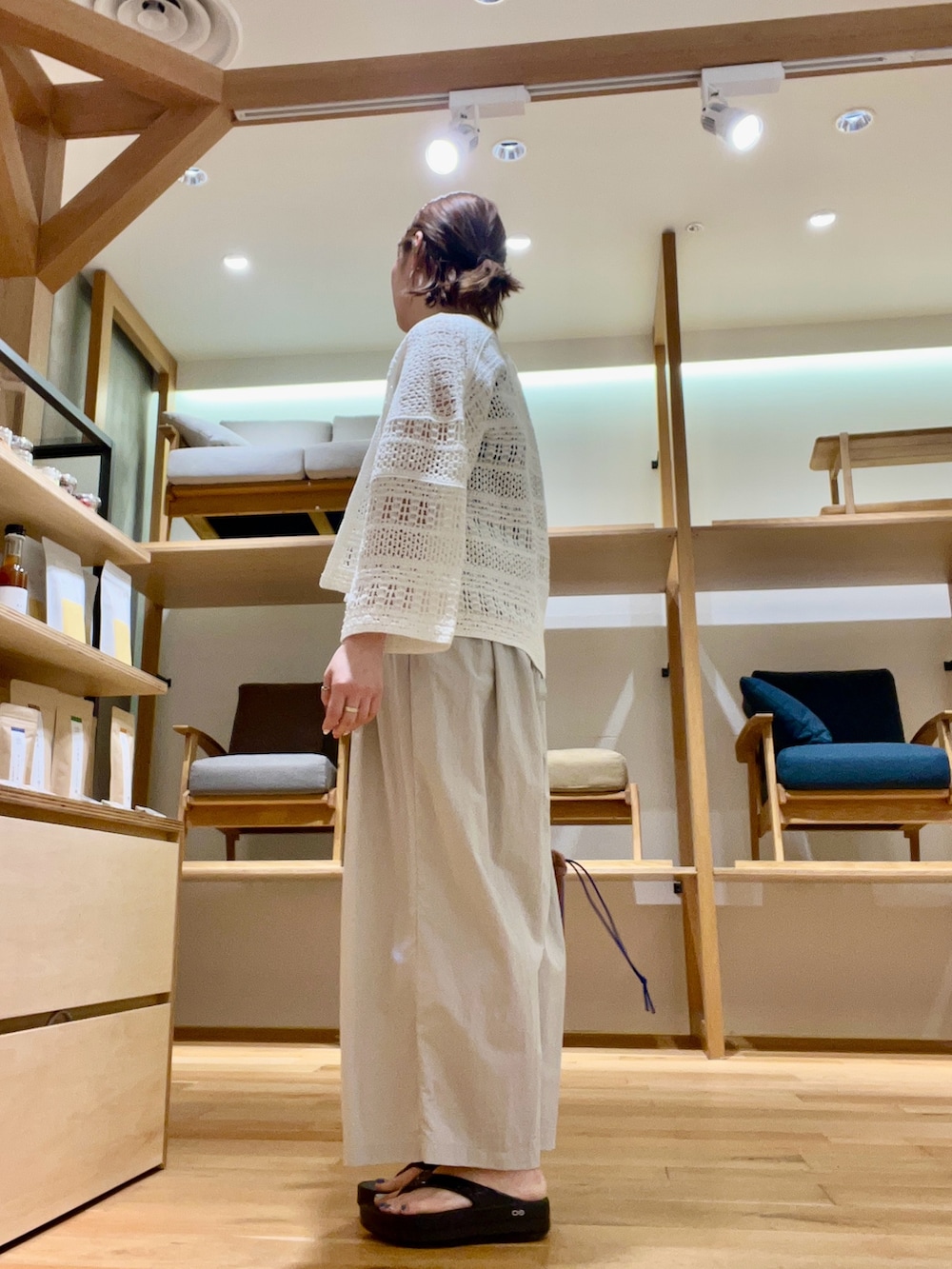 さらっとした着心地なので涼しく着用ができボリューム感が可愛くサンダルと合わせリラックスコーディネートに‼︎
