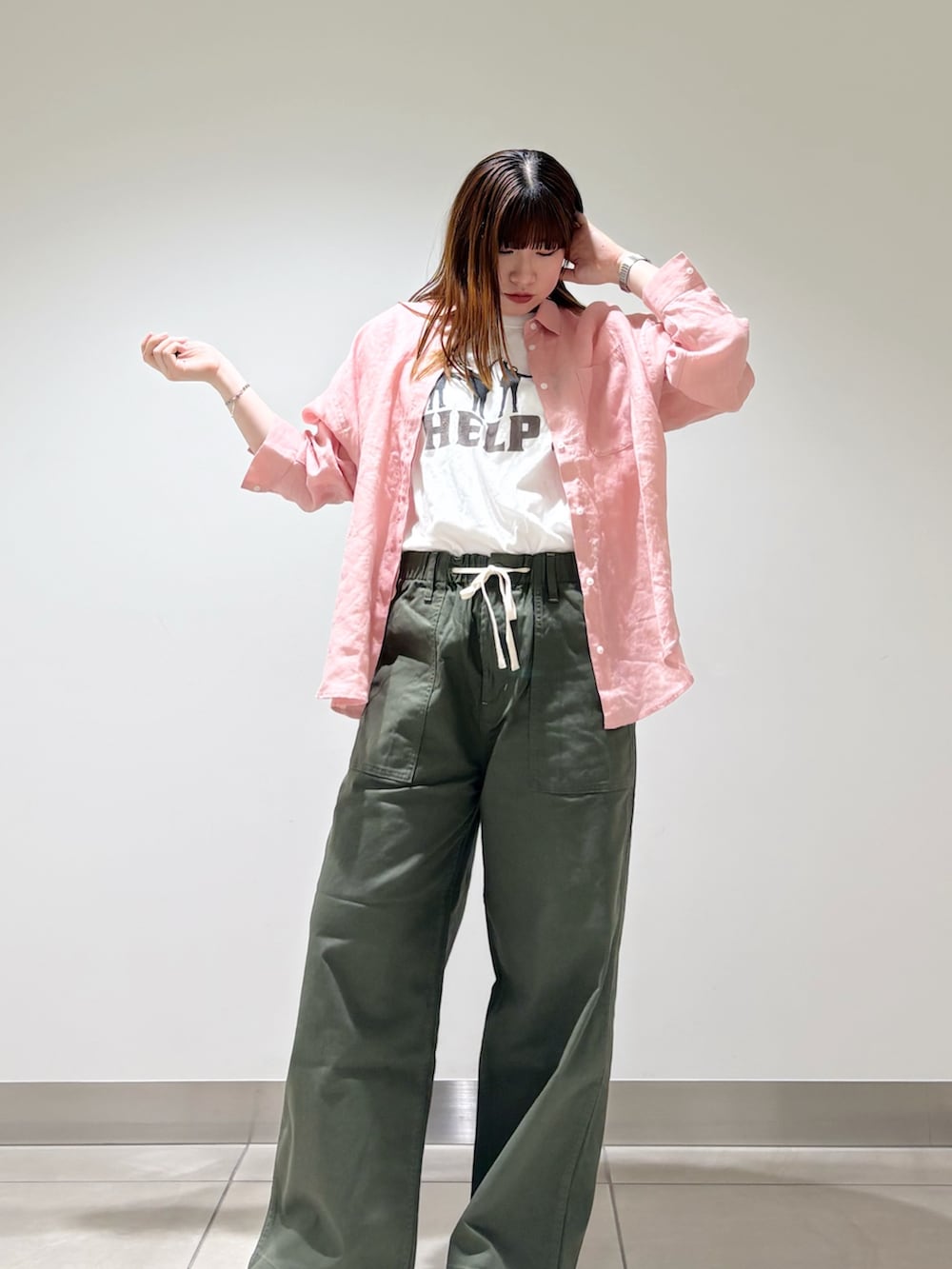 中に着ているBeatlesのHELP Tシャツは、バックプリントも施されていて後ろ姿もGood。