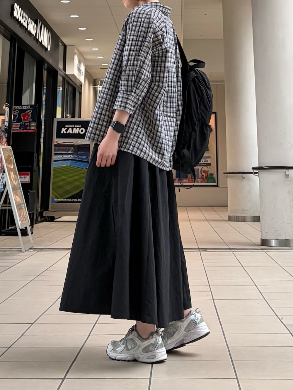 FORK&SPOONのギャザースカートは程よいハリ感があり、軽い履き心地です。