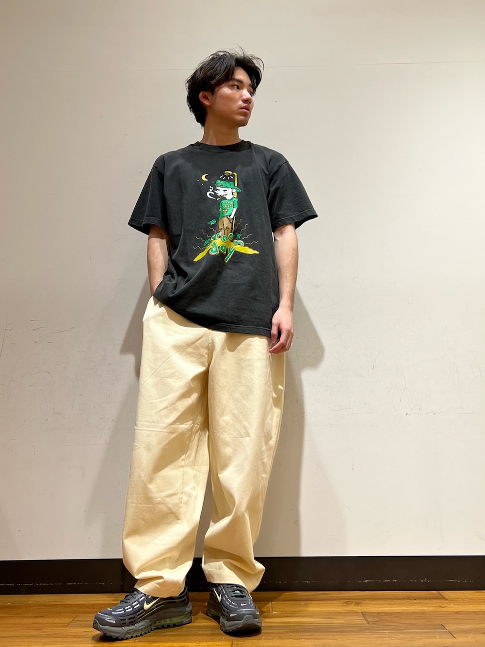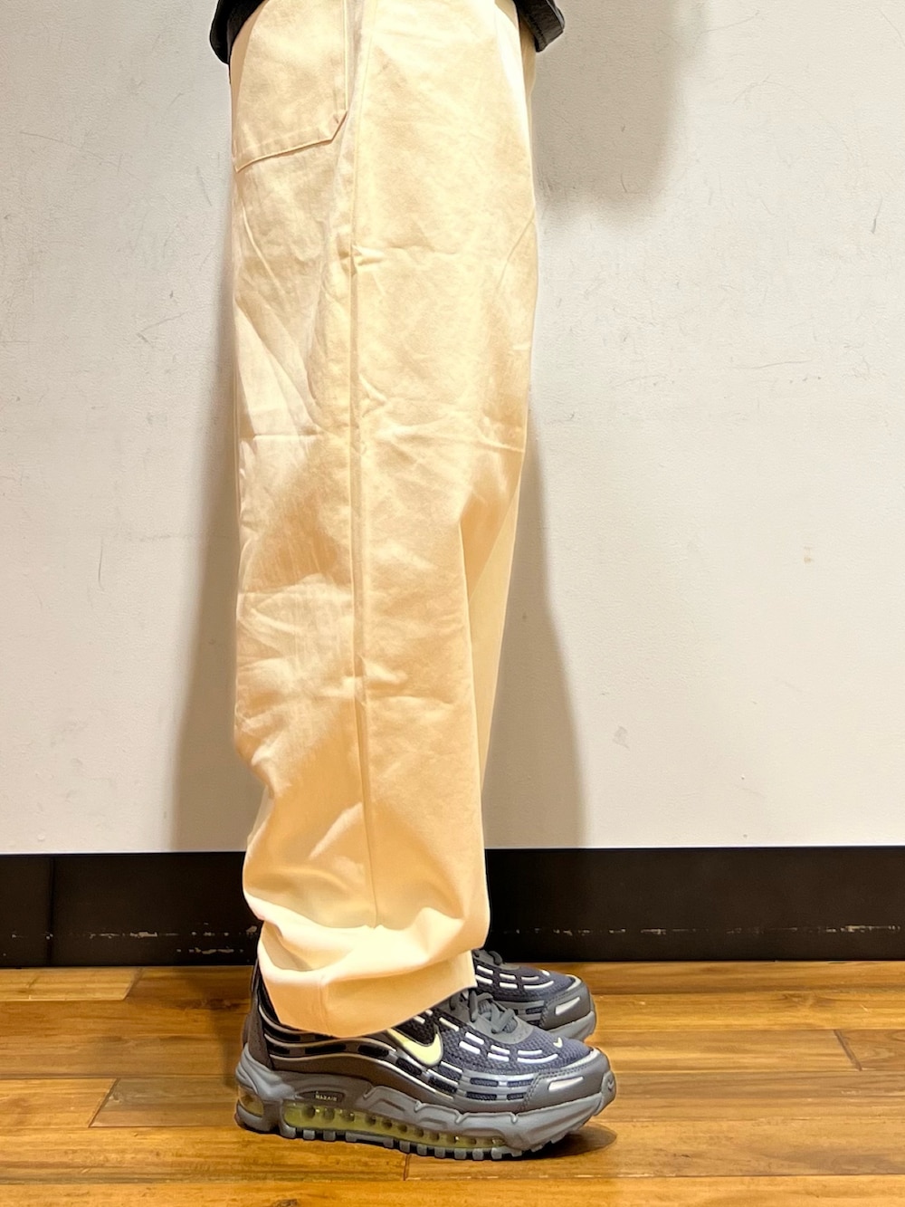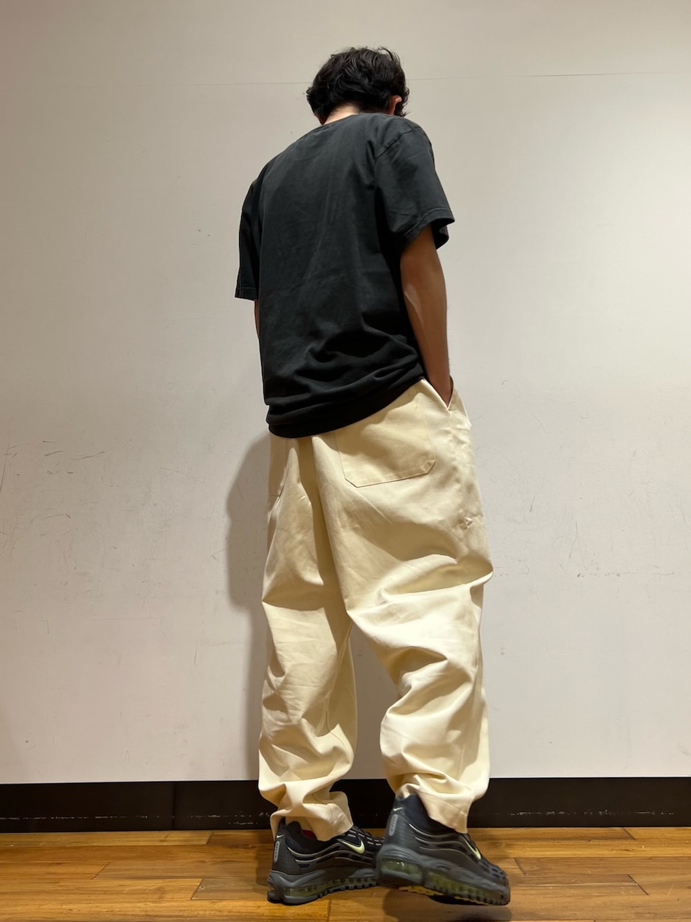 パンツ今回チノパンを着用して、あまり古着に寄りすぎないようなパンツをセレクトしました!古着好きな方でしたらデニムが1番ハマると思います!