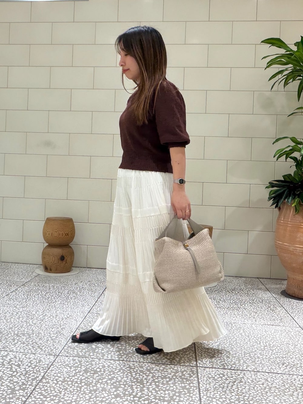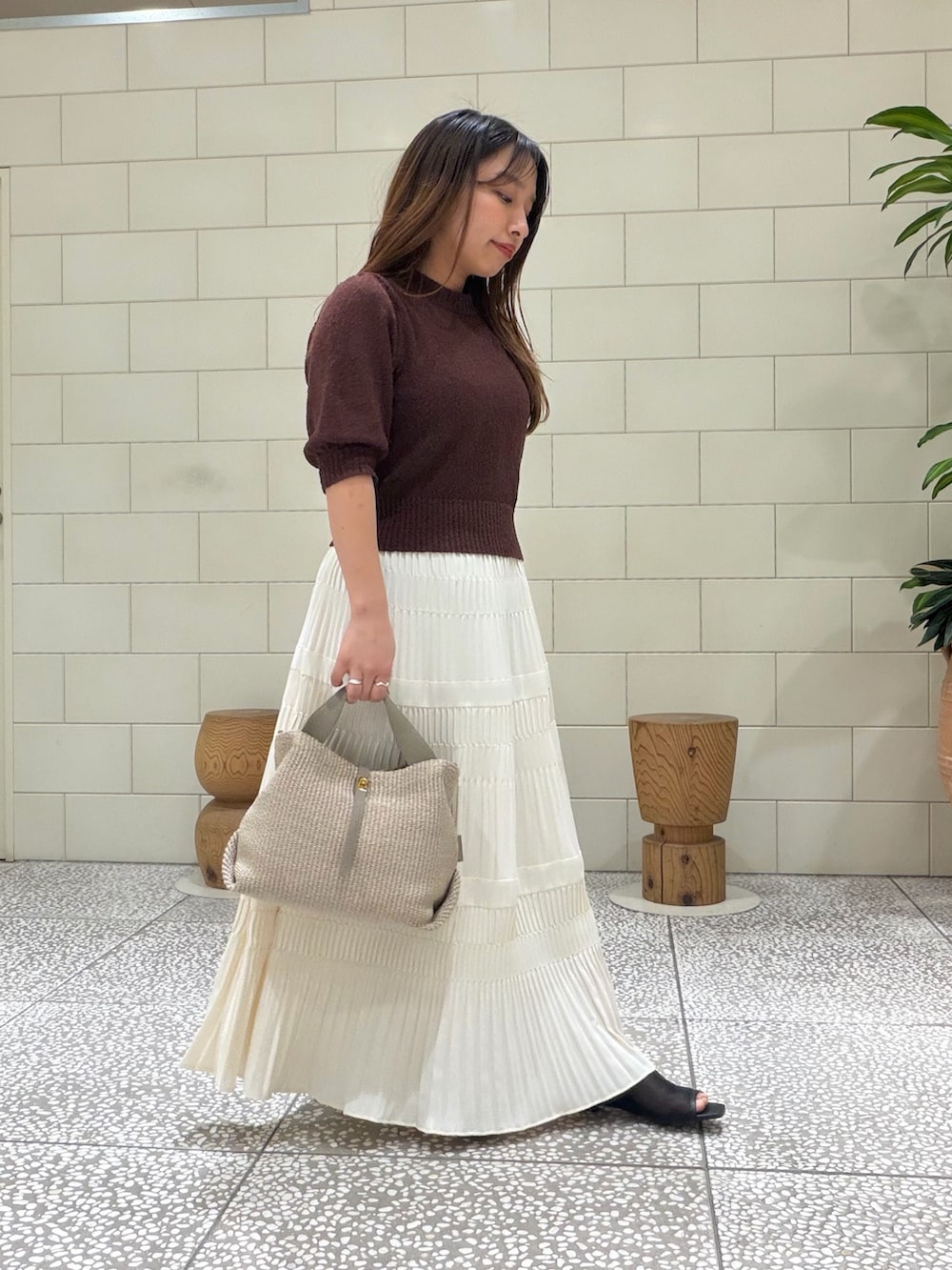 パフスリーブがかわいいURのハーフスリーブニット🤎