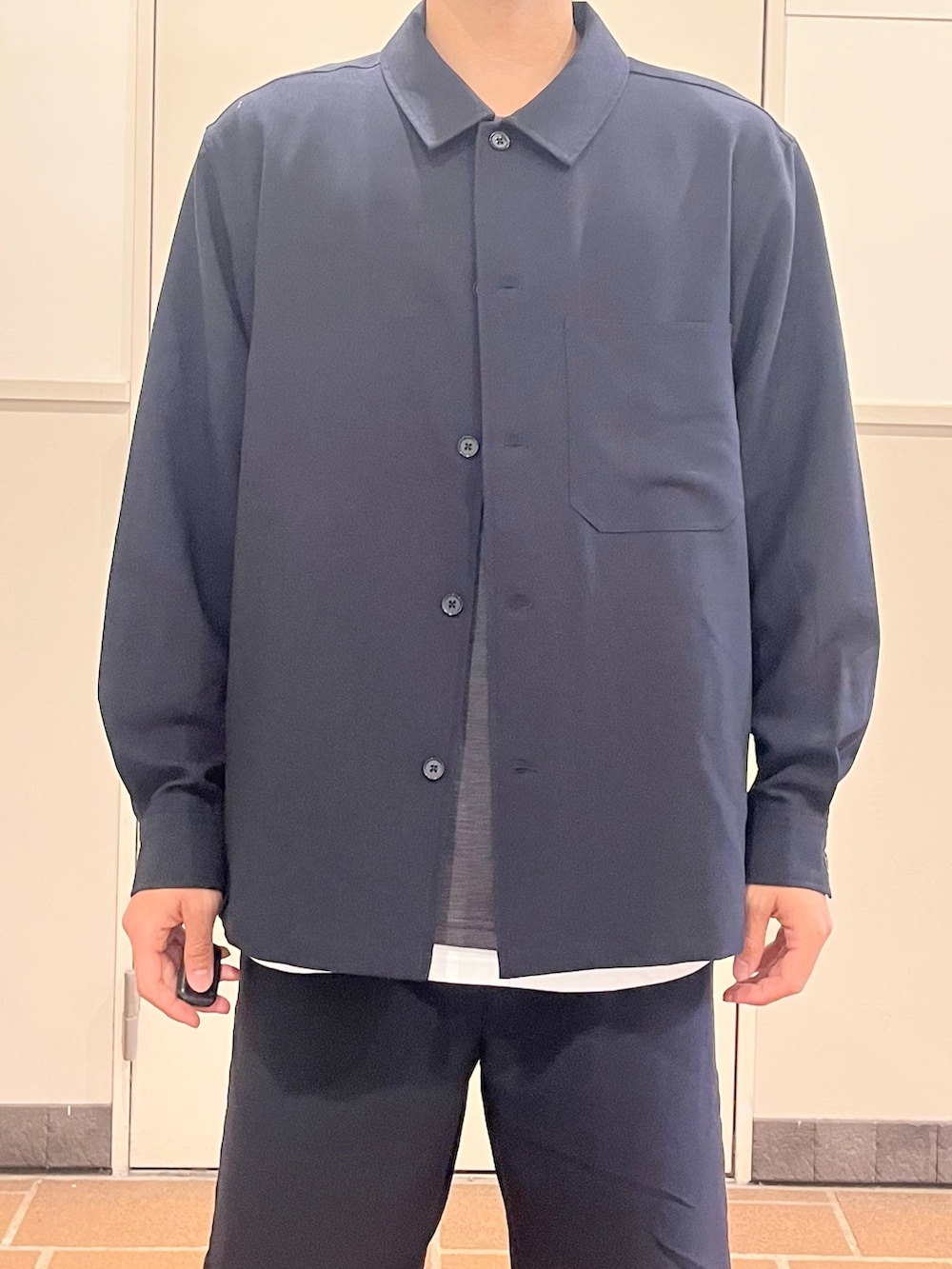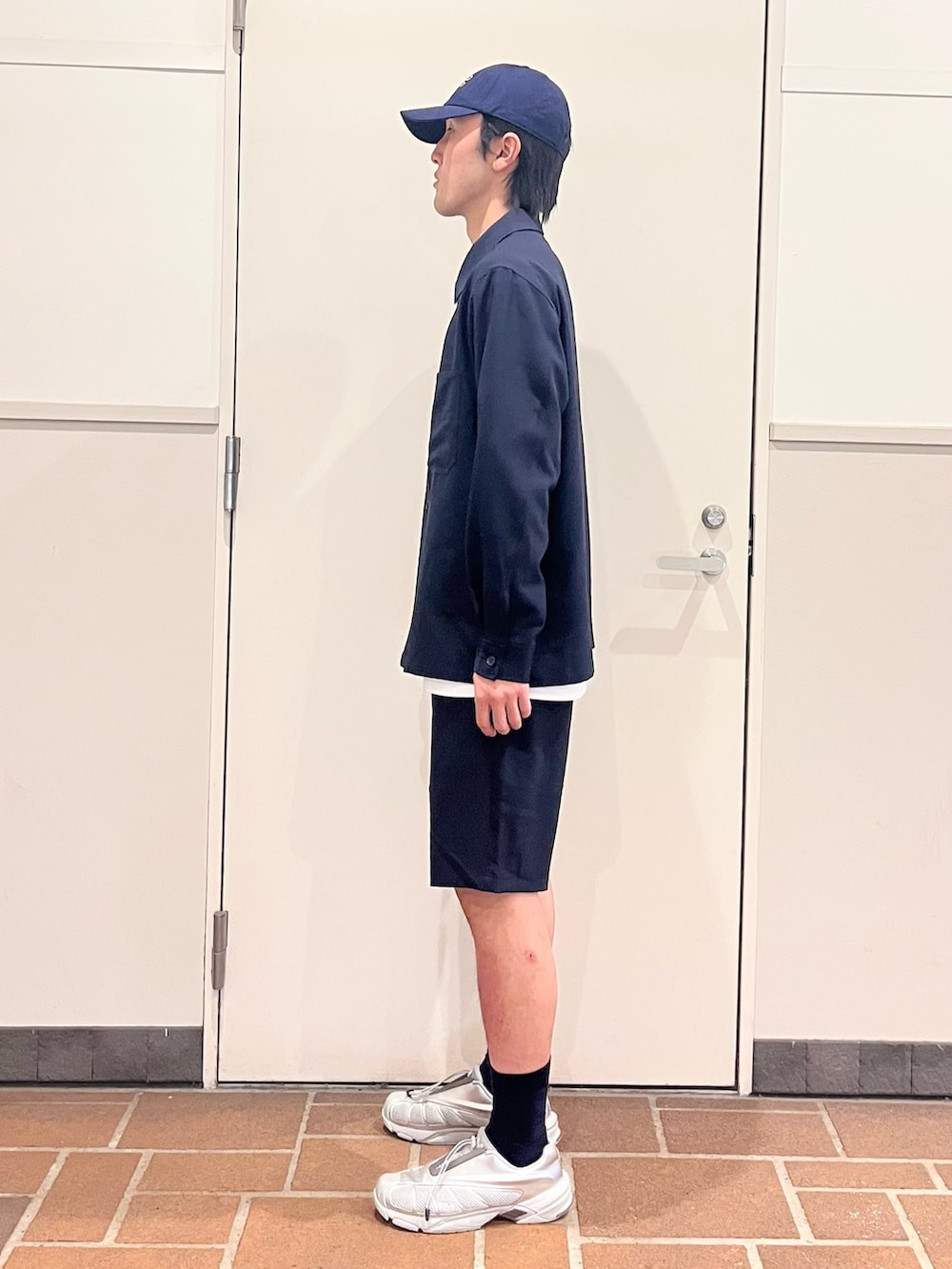 ショーツと合わせればラフな印象に。上下色合わせてセットアップにすると、カチッとしてラフになりすぎずちょうど良かったです。