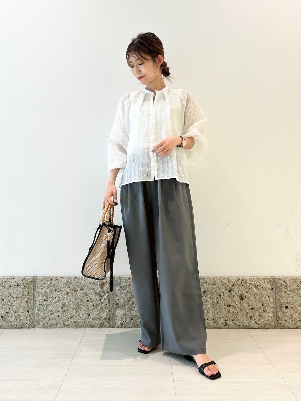 シアー素材が抜け感と大人っぽさを出してくれるので、