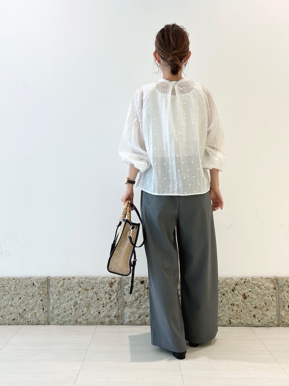 ボトムには完声シリーズのギャザーワイドパンツを。