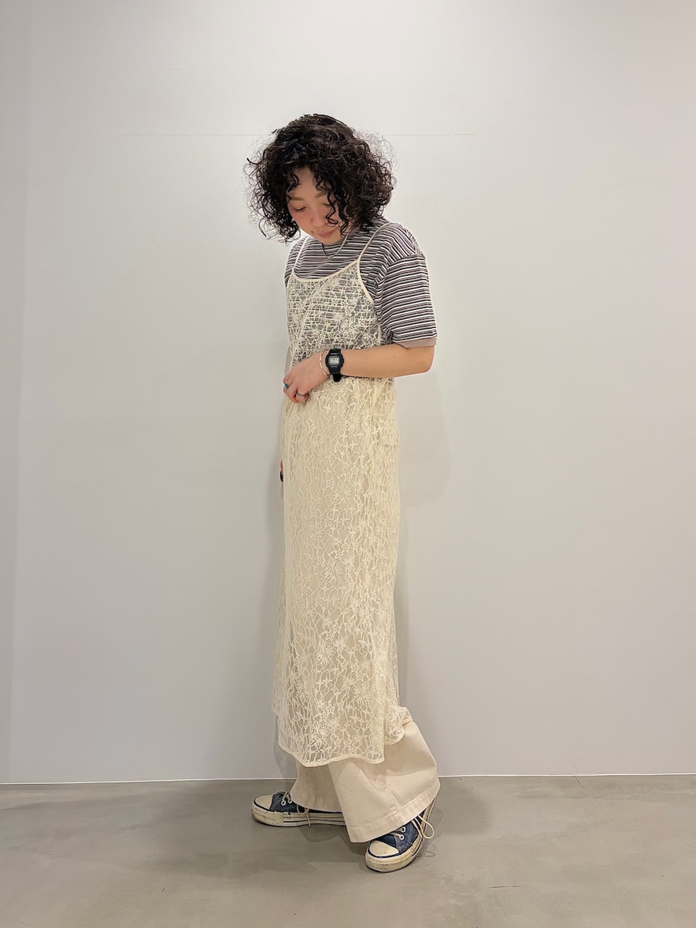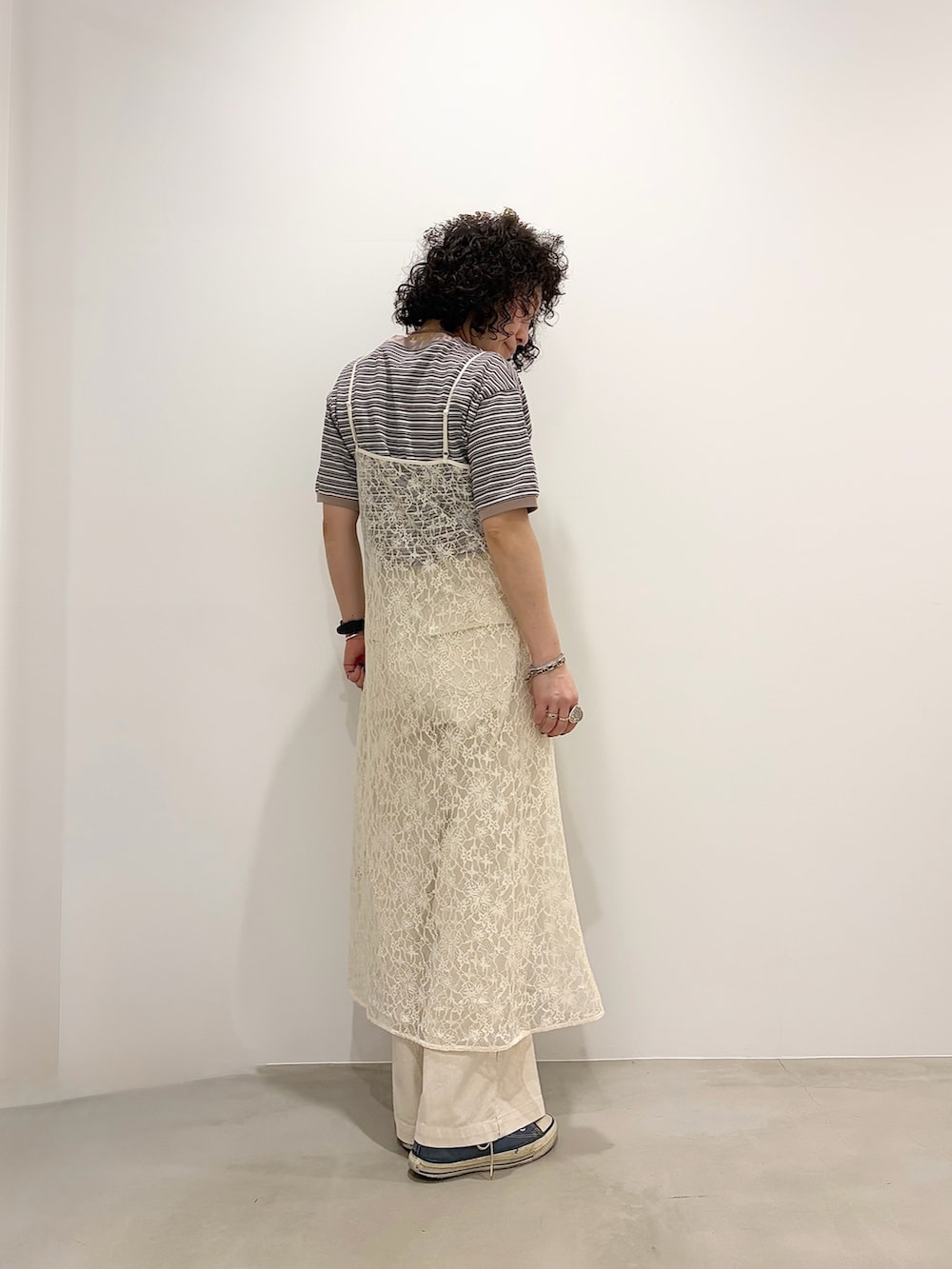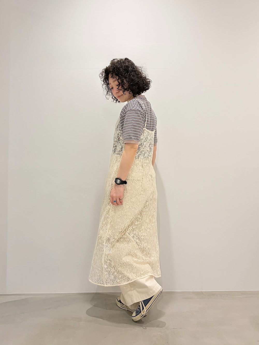 ケンカしそうな柄同士ですが、単色レースならカラーのボーダーでもすんなりマッチ◎
