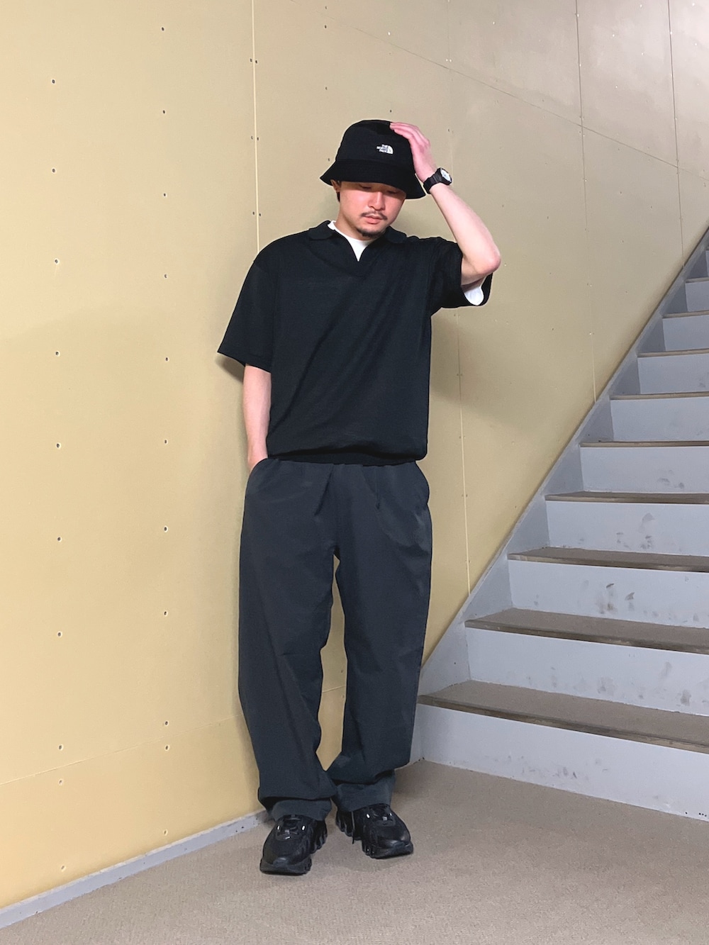 Hanes別注のbeefy Tシャツはインラインのものよりゆったりしたサイズ感ながら、首元を詰めているので綺麗に、ヨレずに着続けられます。