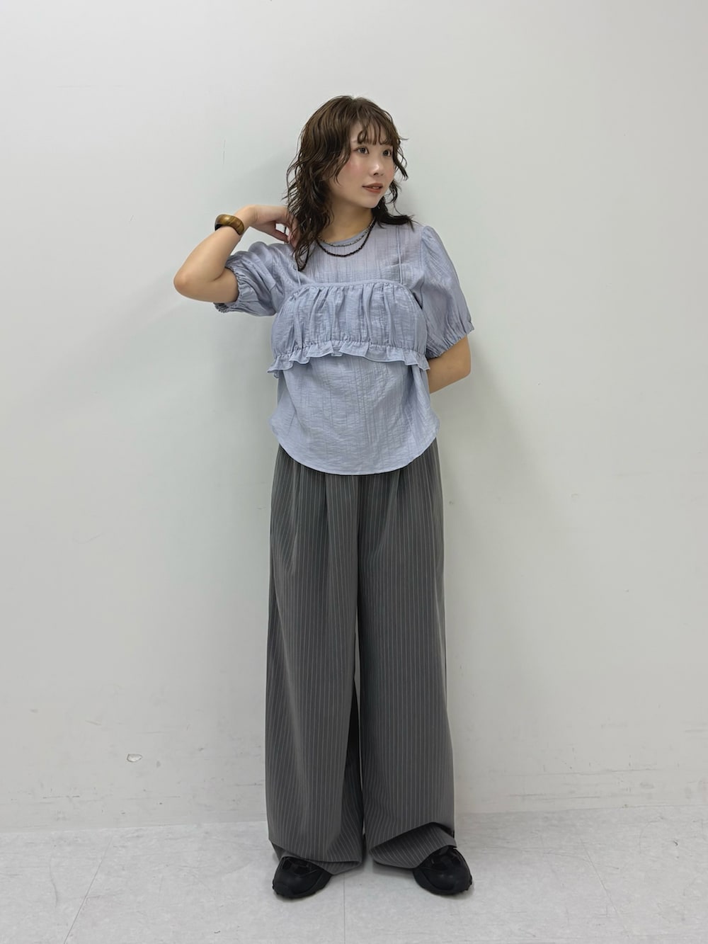 ブラウスはパフスリーブのデザインになっていて、インナーとしてもお使いいただけます!