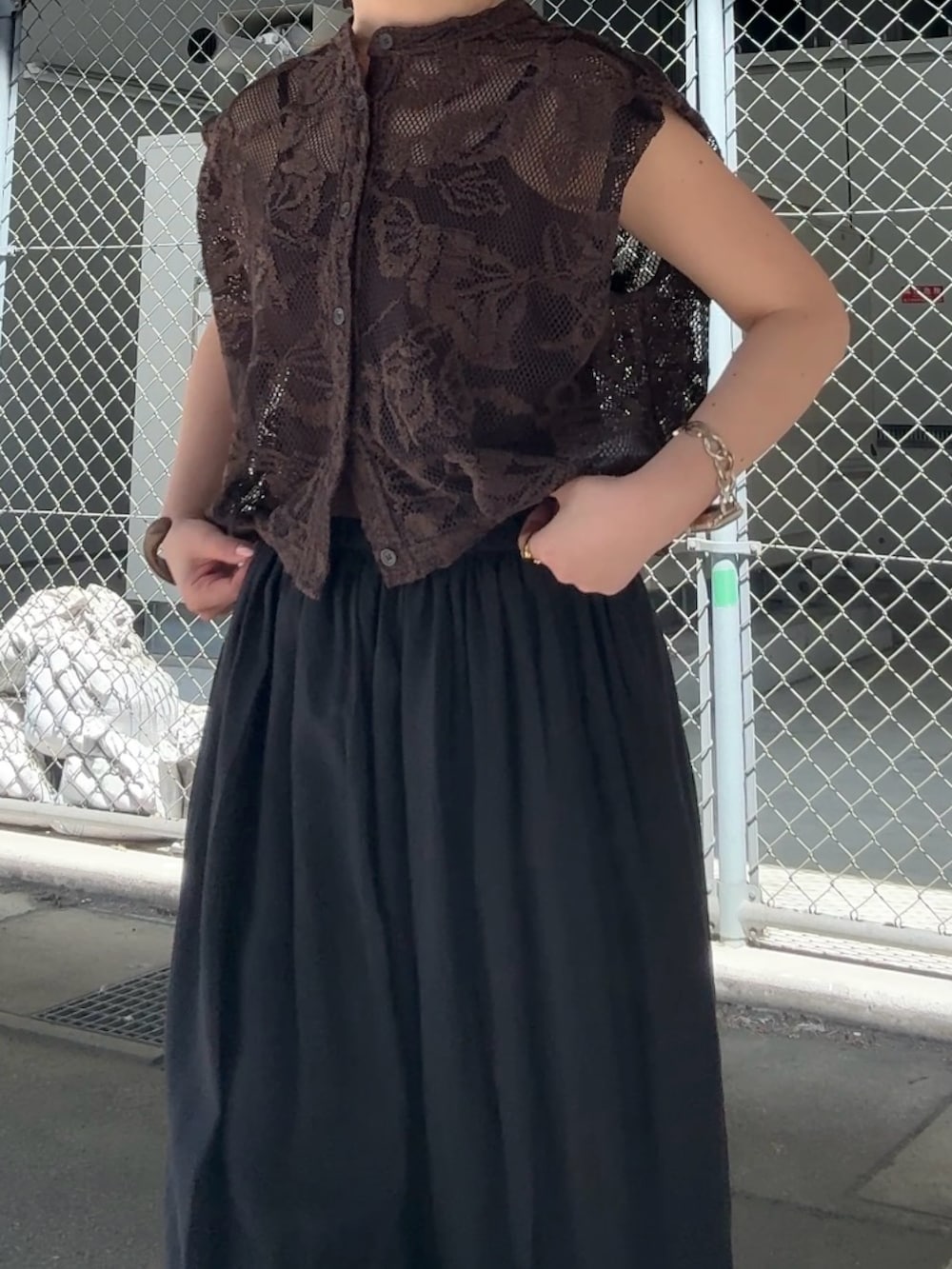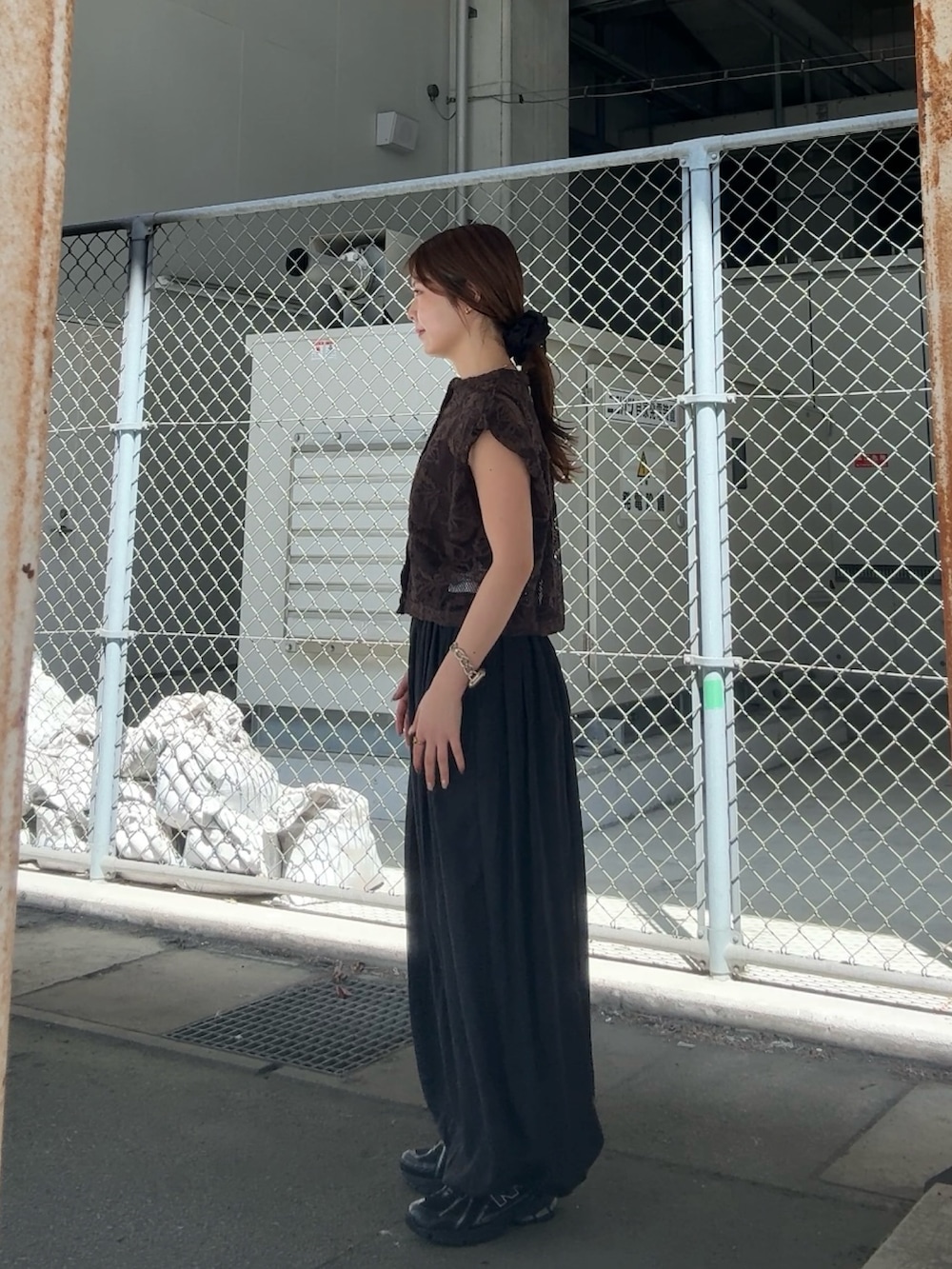 トップスは、ブラウンのカラーは