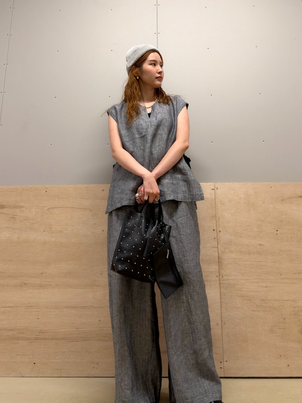 DOORSヘリンボーンリネンワイドギャザーパンツ- カラー: