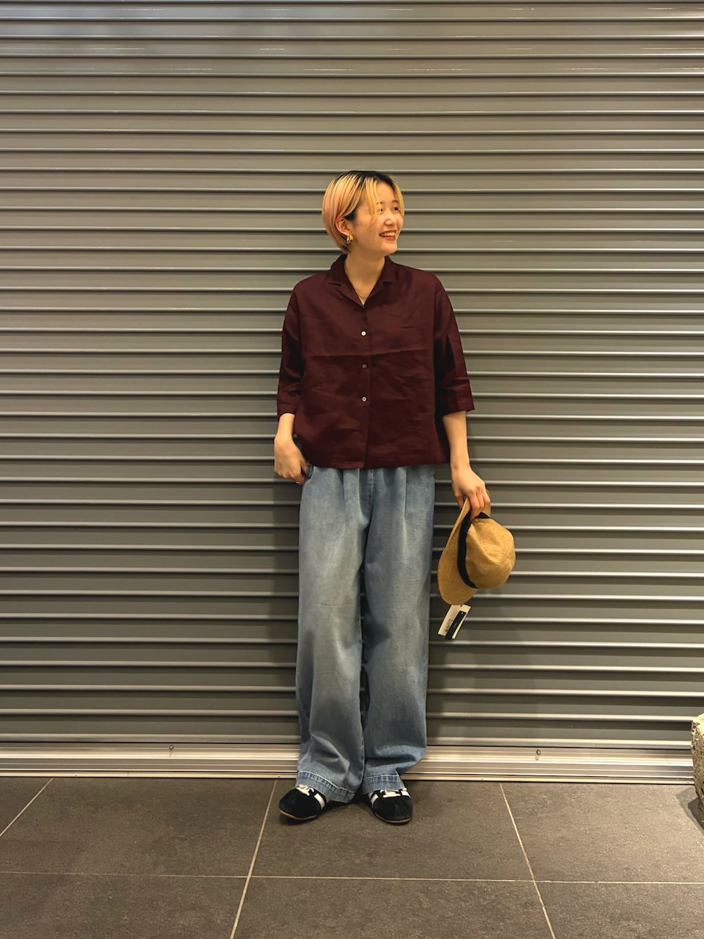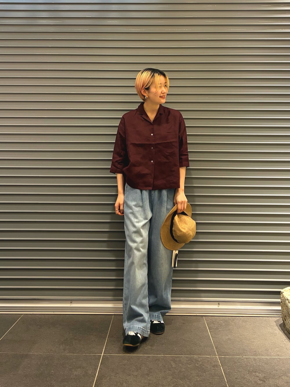 絶妙な色のシャツは、合わせやすく、コーデの主役にもなるリネンシャツですね🙆‍♀️