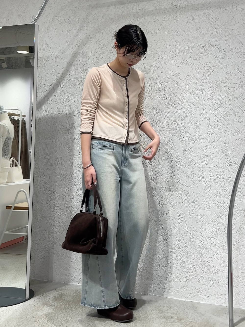シンプルな合わせにメガネをプラスしてこなれ感も◎