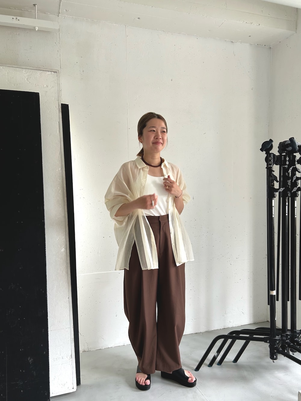 シンプルキャミ合わせでヘルシーに🤎