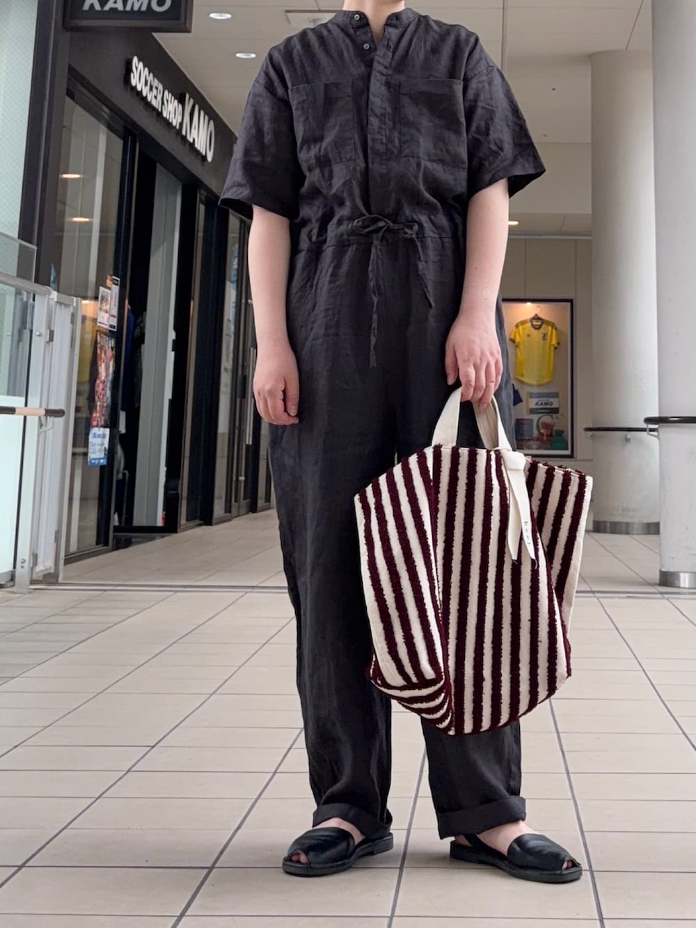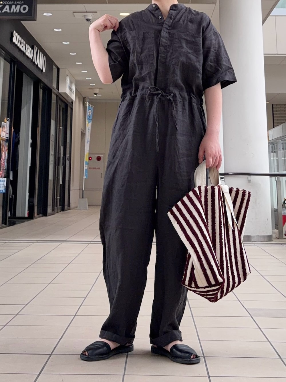 1枚でコーディネートが完成するオールインワンは、肌あたりの良いリネン素材です。