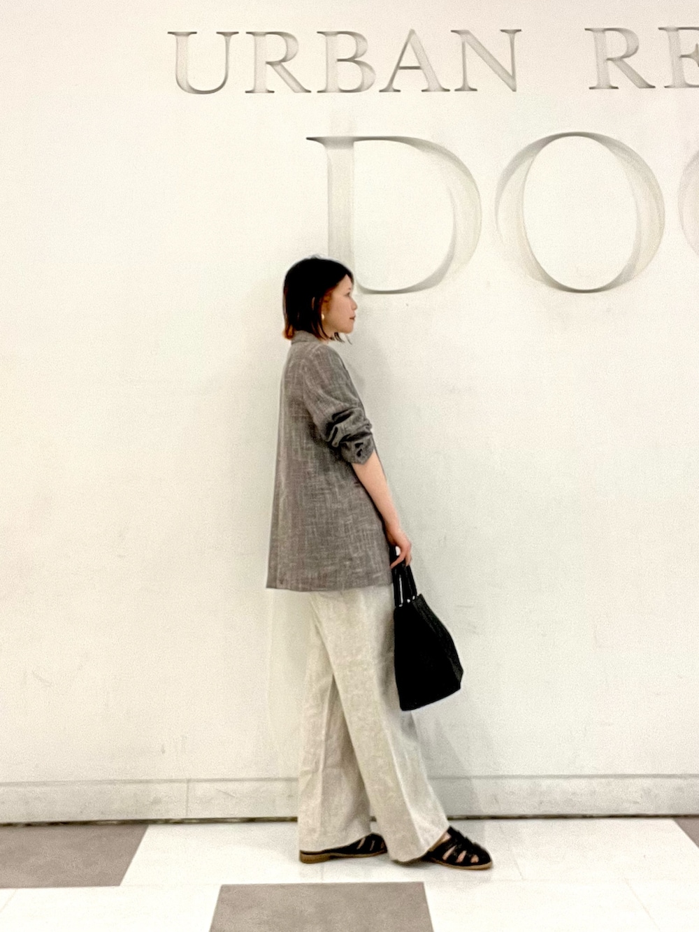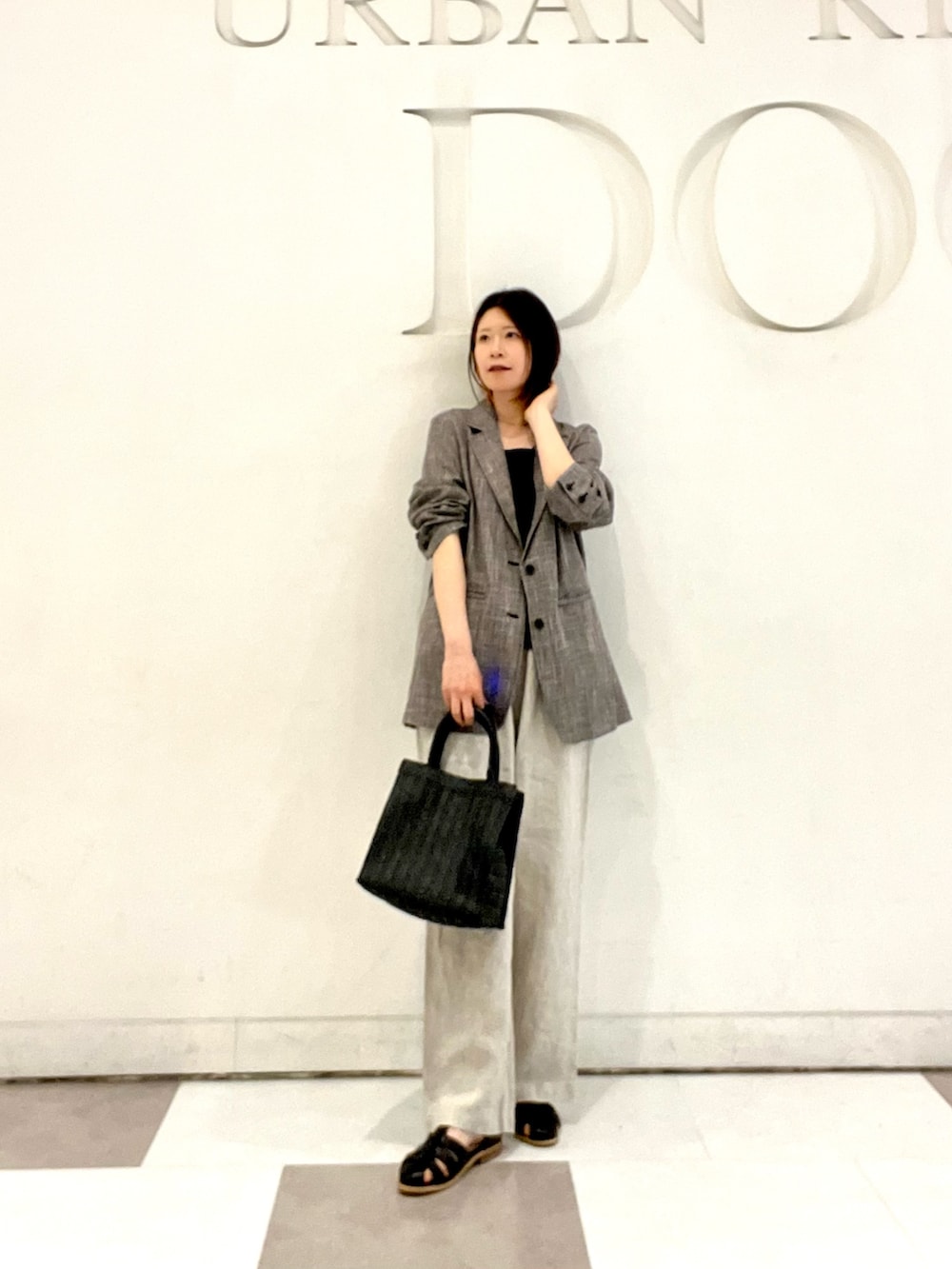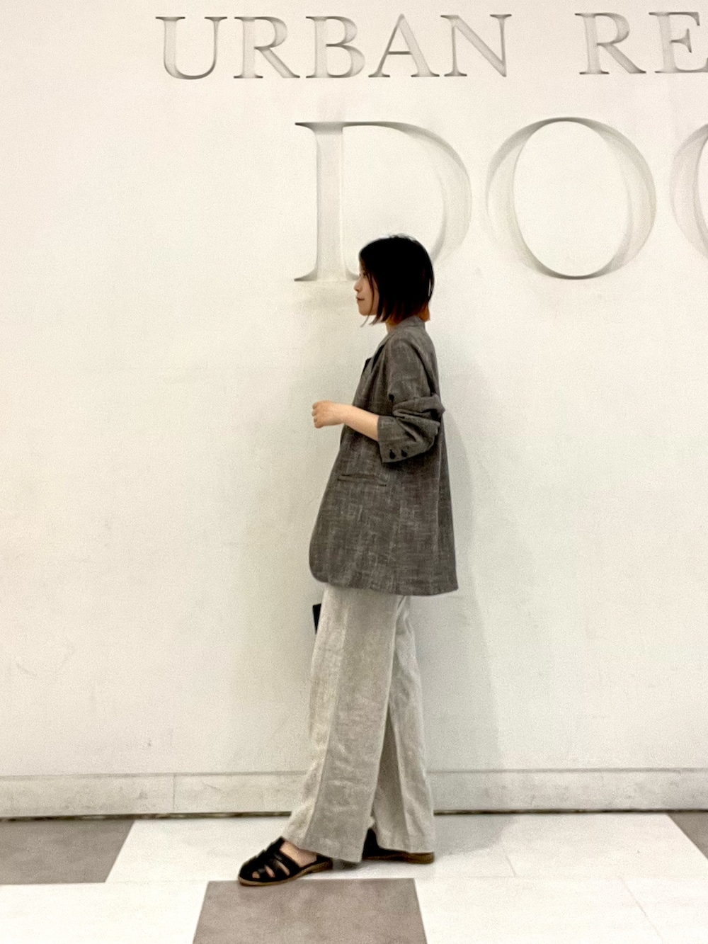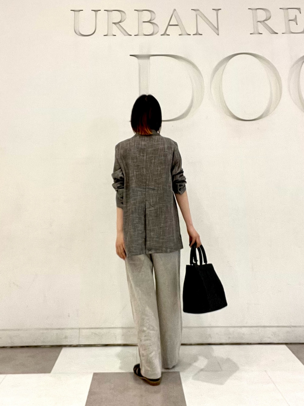 ジャケットは程よくシアー感があり軽い着心地◎かっちりしすぎずカーディガン感覚で気軽に羽織れるのも嬉しいポイントです!インナーをノースリーブにすると夏まで活躍する1着です◎