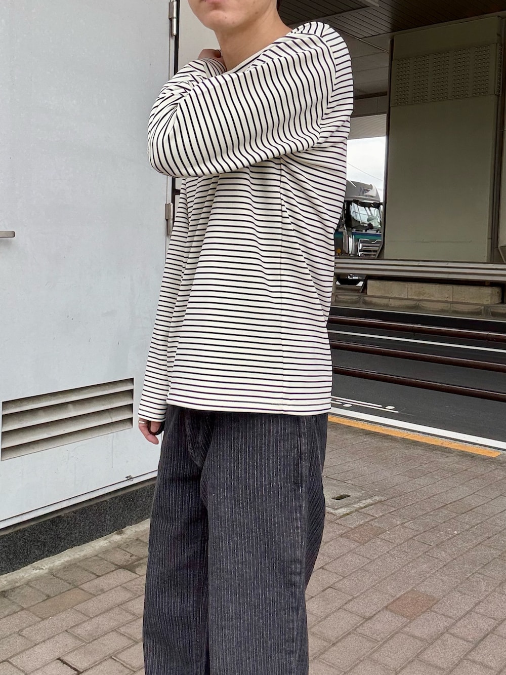 SENSE OF PLACEボーダーヘンリーネックロングTシャツ- カラー: