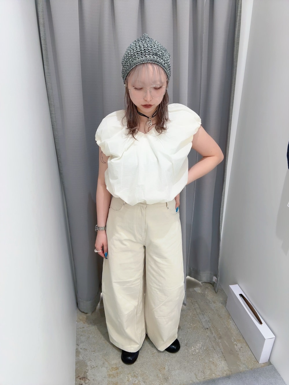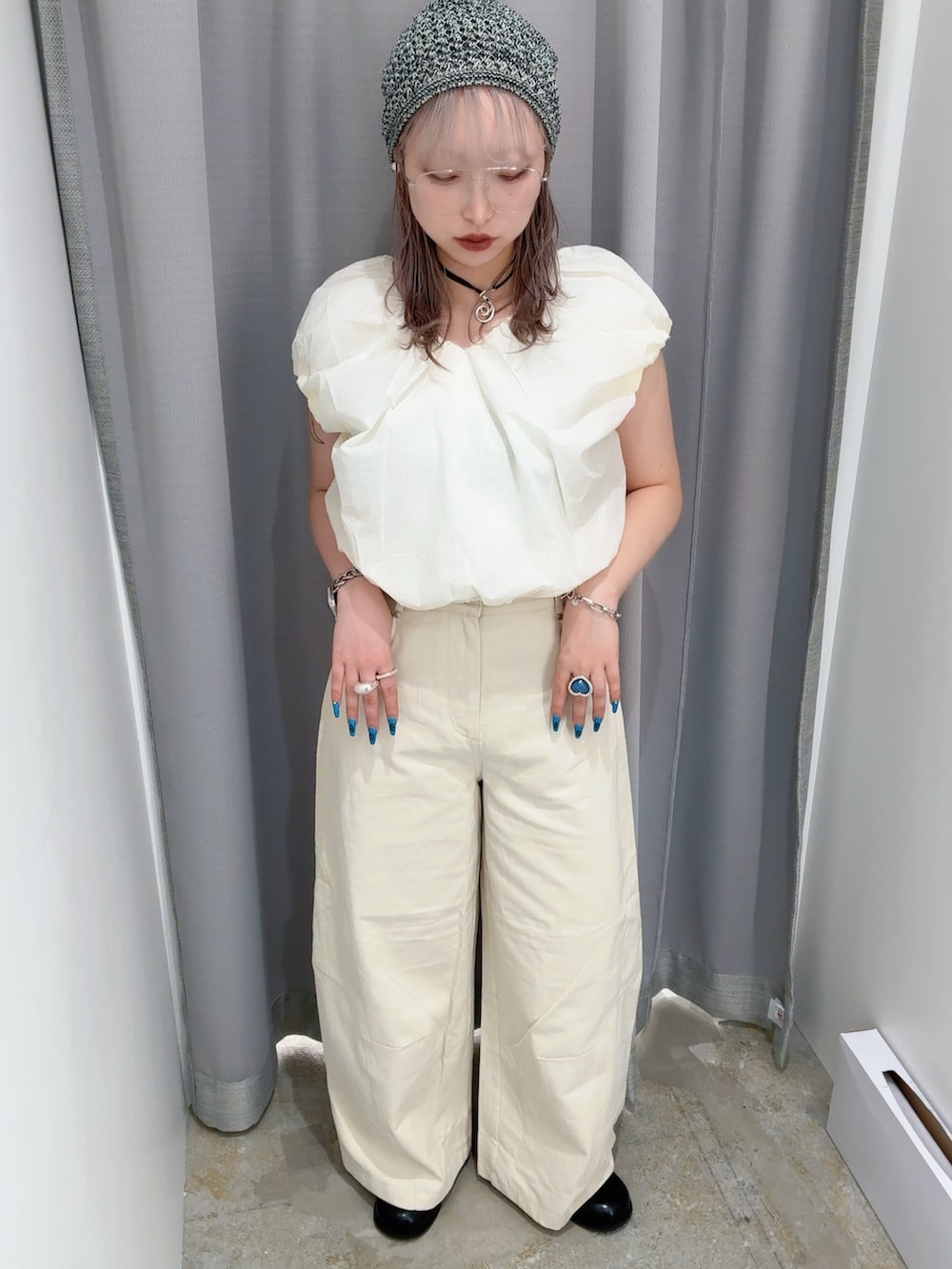 最近はワントーンコーデ個人的に好みでハマってます。後このバルーントップスは2色買いしたぐらい気に入ってます💖私は首元スッキリ前リボンで着ることが多いです!あと首のリボンの締め具合によって袖の長さの調節ができるので二の腕カバーしたい方にはおすすめです!