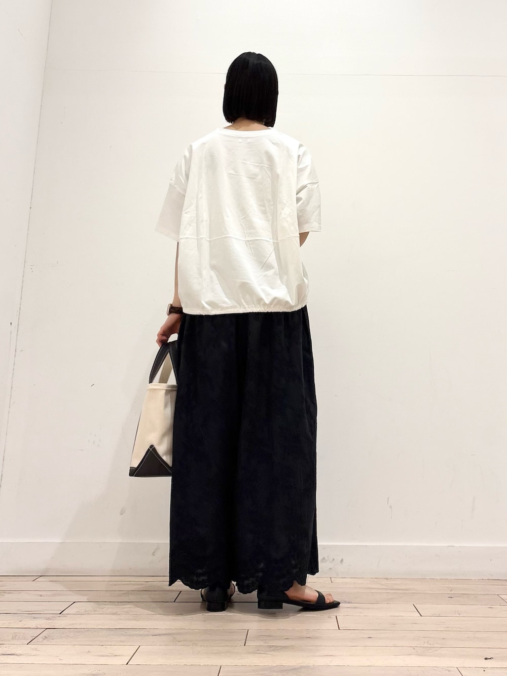 裾をギュッと絞って丸みを出せば、コーディネートのポイントに👏