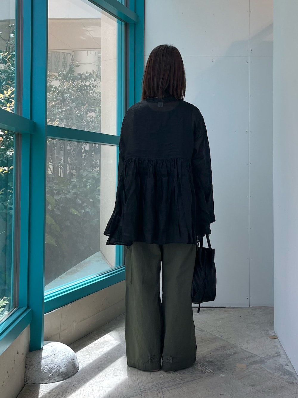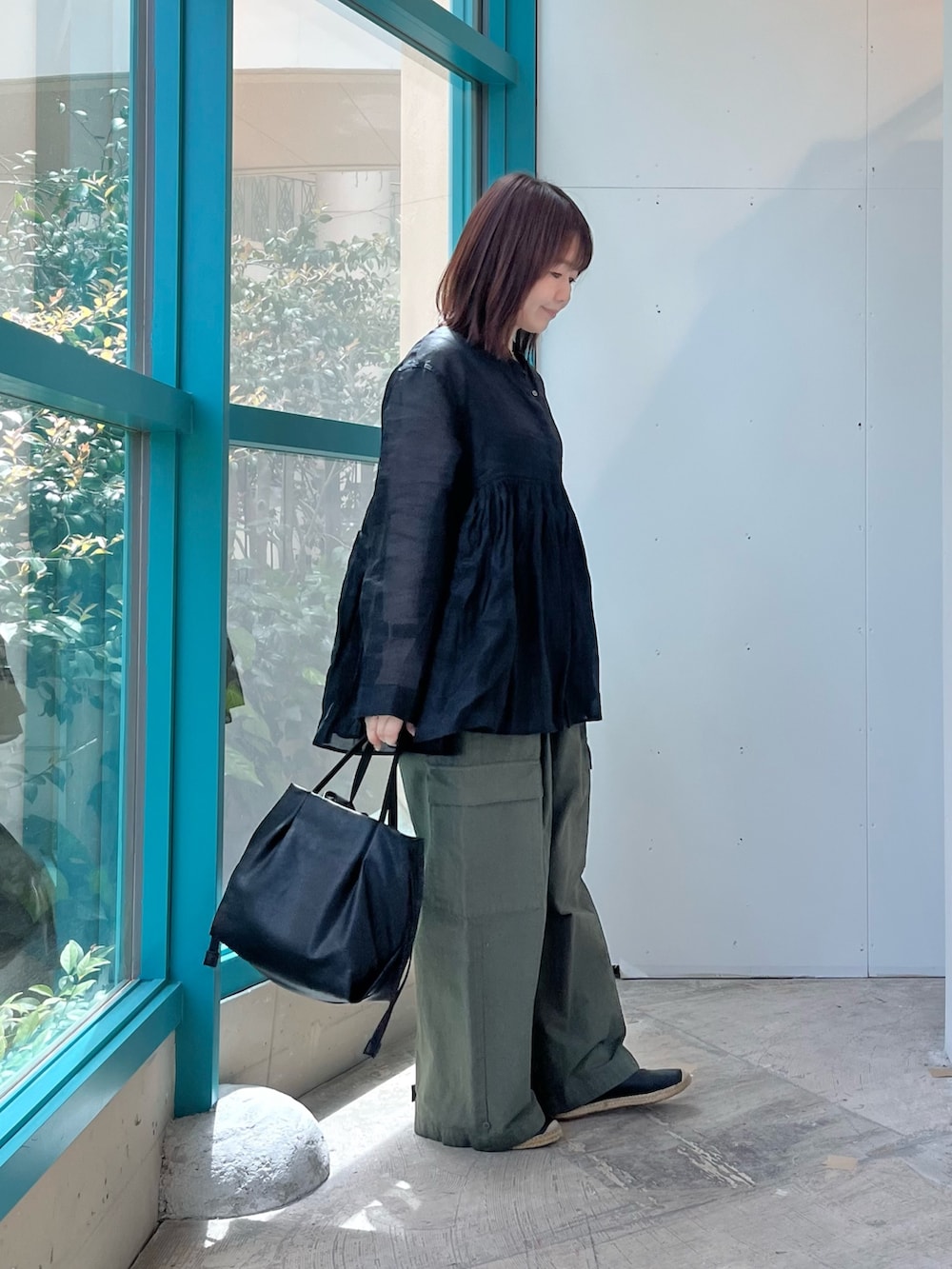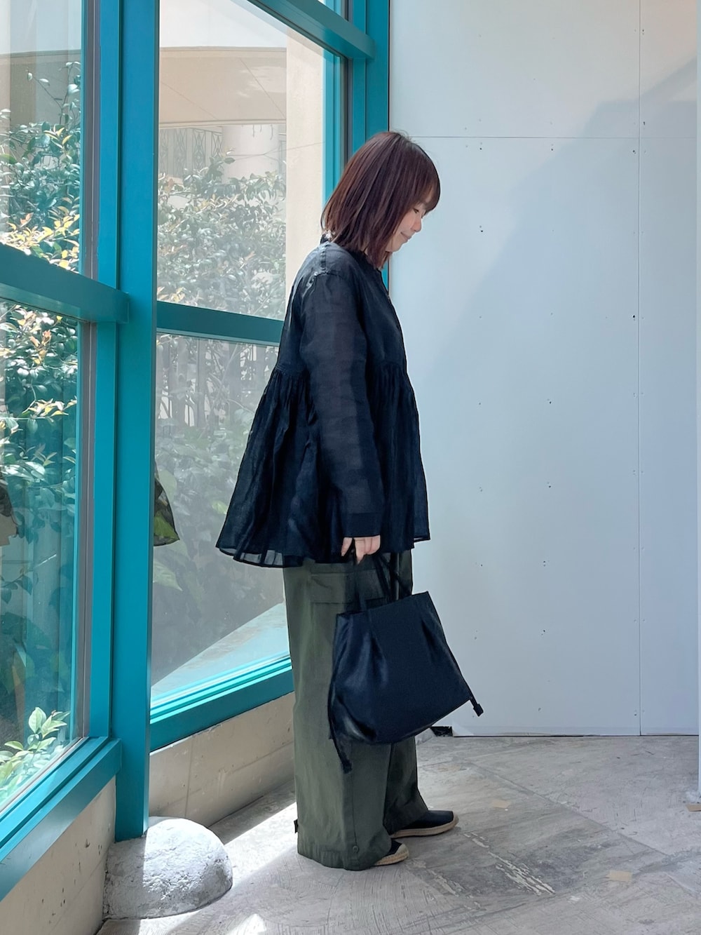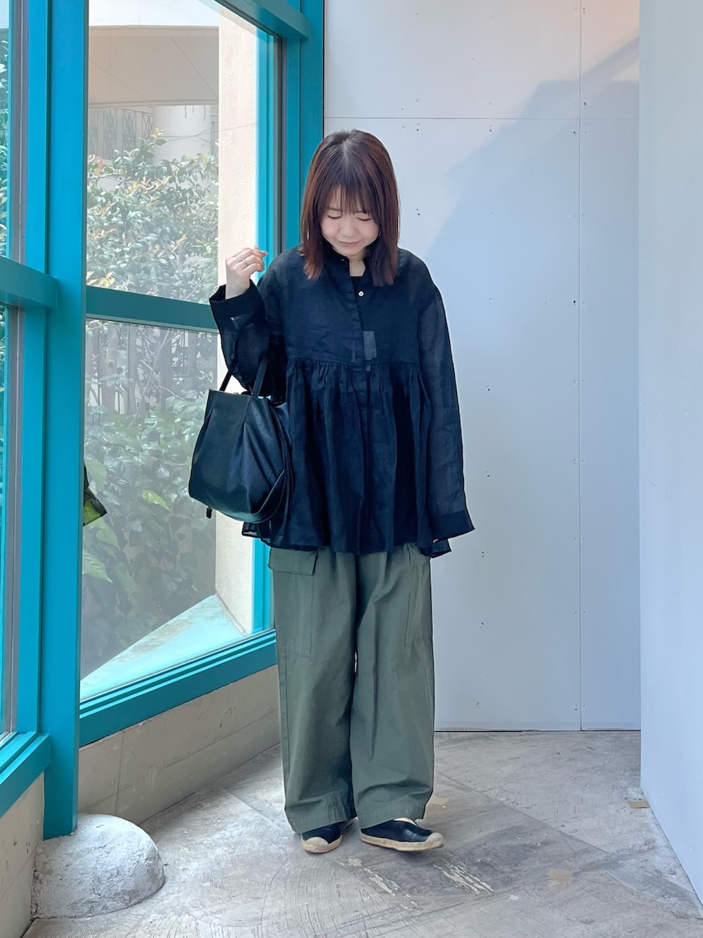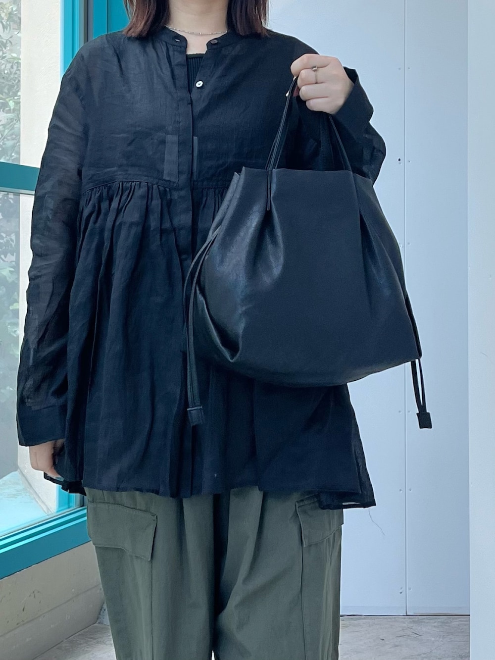 長袖のブラウスは透け感がありますが同色のタンクトップを合わせると気になりません。