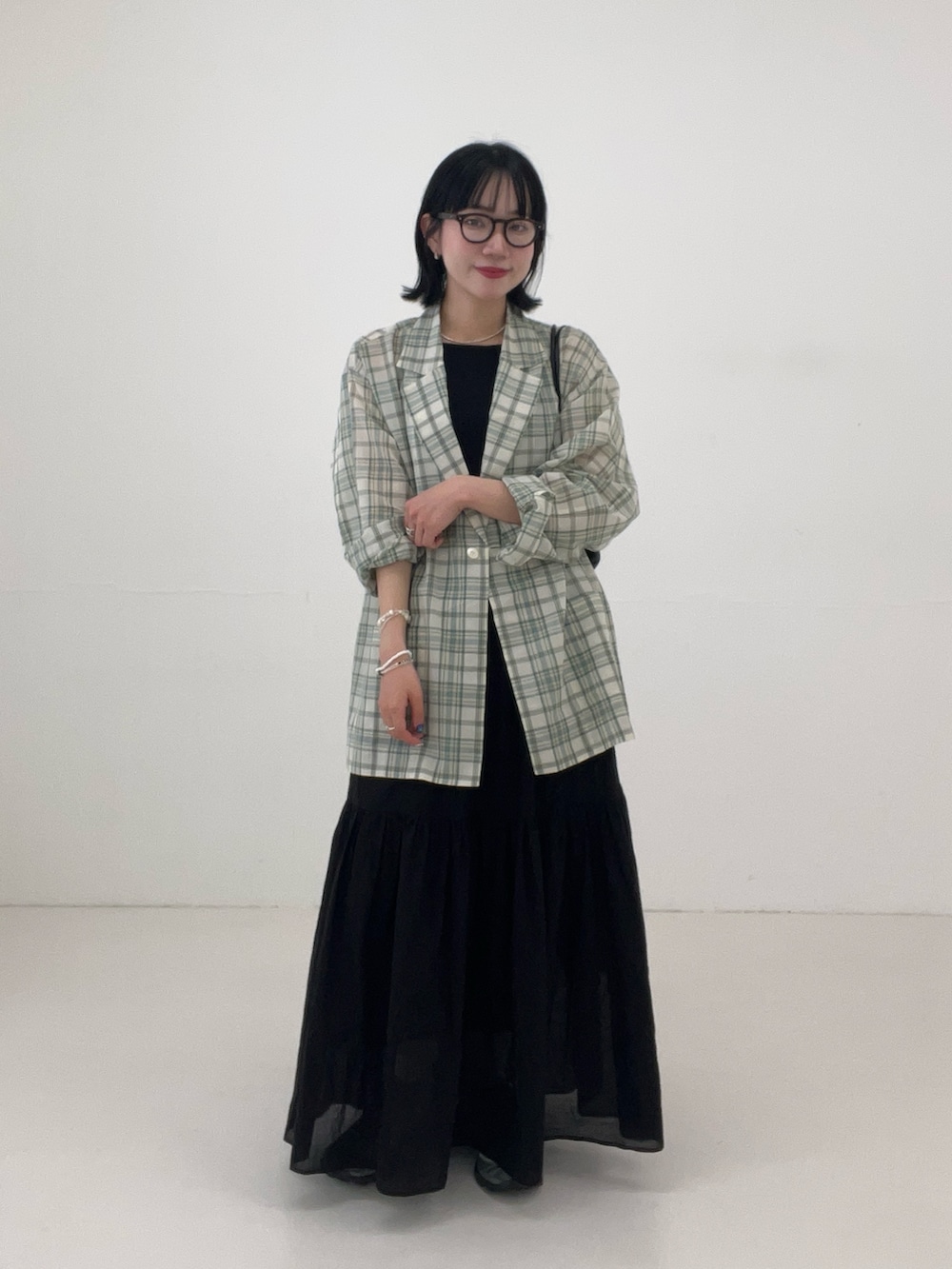 シューズの色を拾って合わせたシャツジャケットはジャケットっぽく着れるシアー素材のシャツで透け感がとても可愛かったです🍀