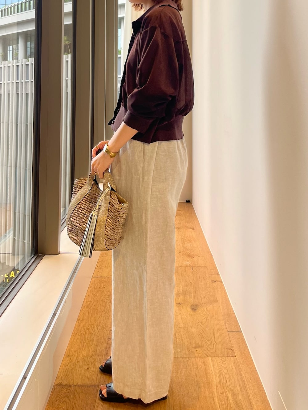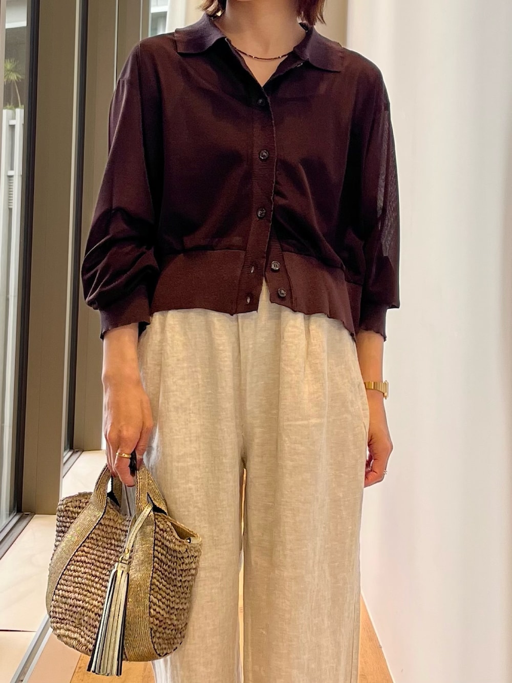 リネンパンツを合わせて春夏らしいスタイリングに。
