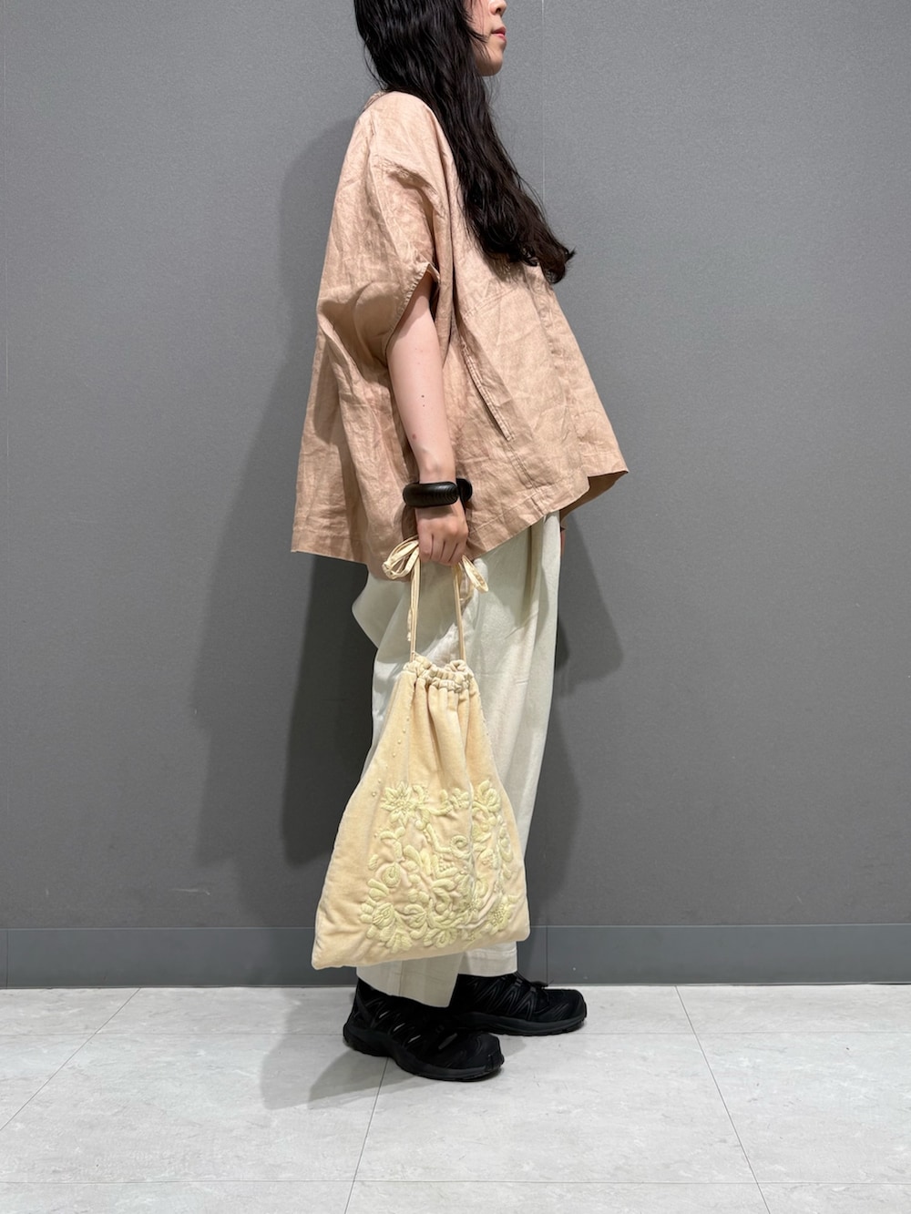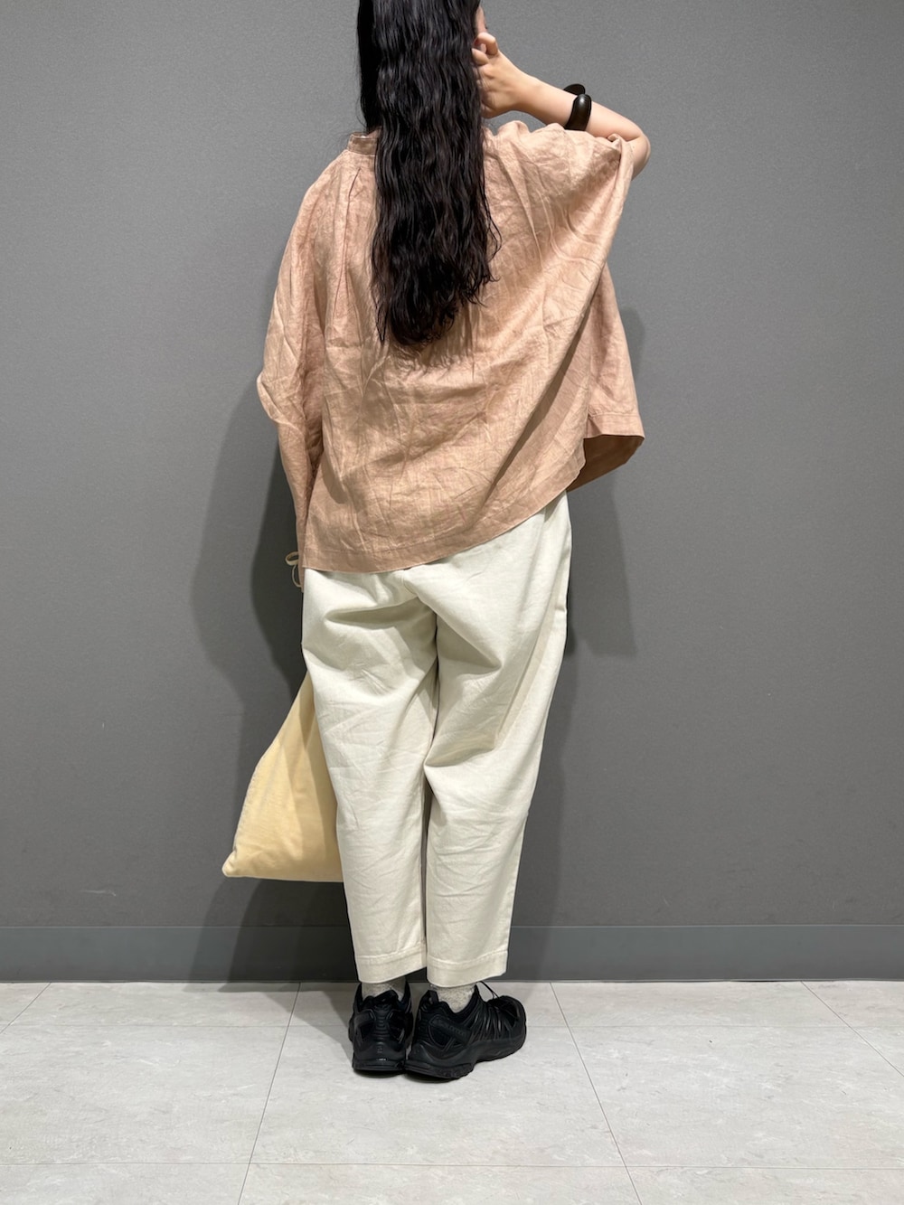 リネンのスクエア型のシャツを着ました。