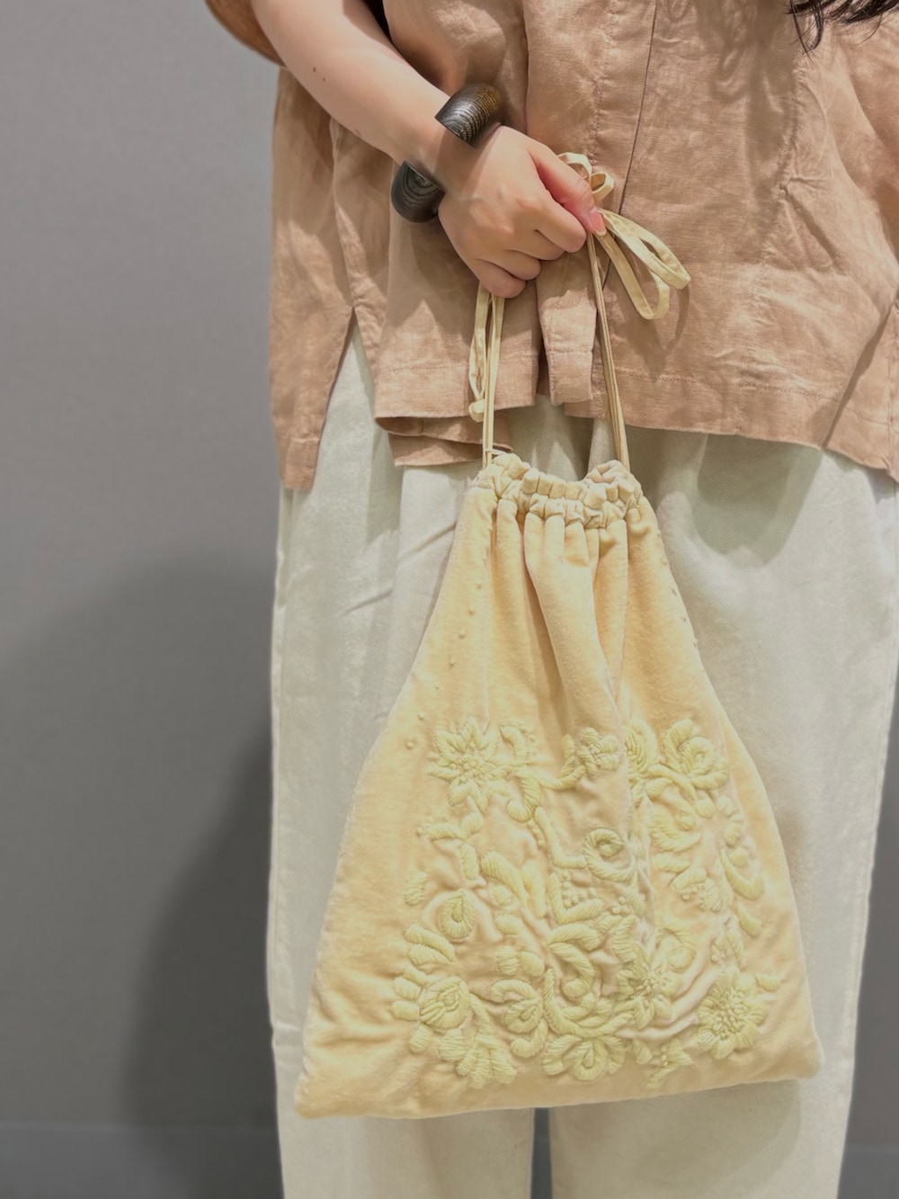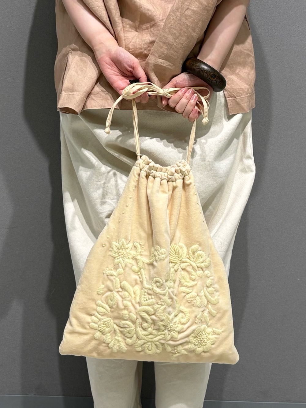 【Khadi&co VELVET EMBROIDERY BAG/NAT】
