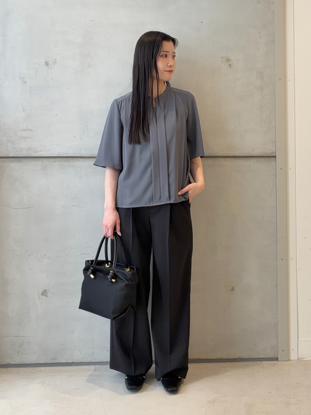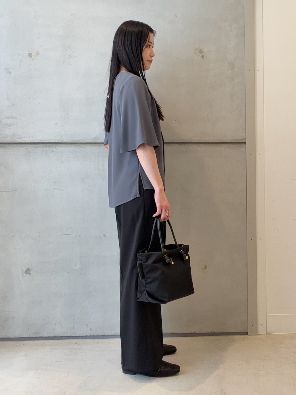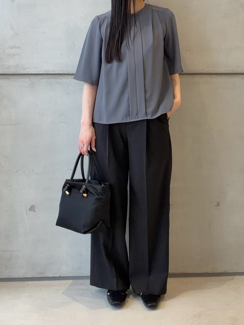 防シワの素材なので、シワになりづらく、長時間のデスクワークで座った時にもストレスフリーに綺麗に着ていただだけます✨