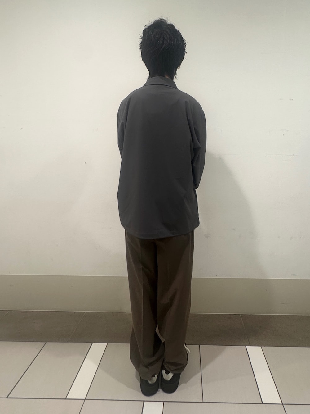 ボトムスにはキャリーマンのイージーワイドのワイドパンツを取り入れ、柔らかさと落ち着きをプラス。