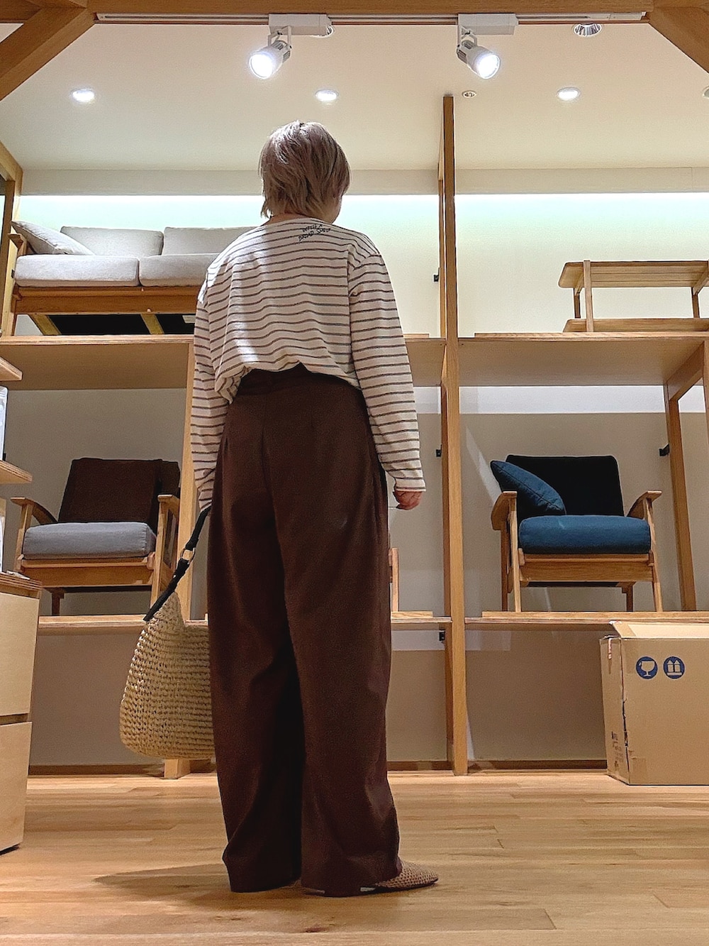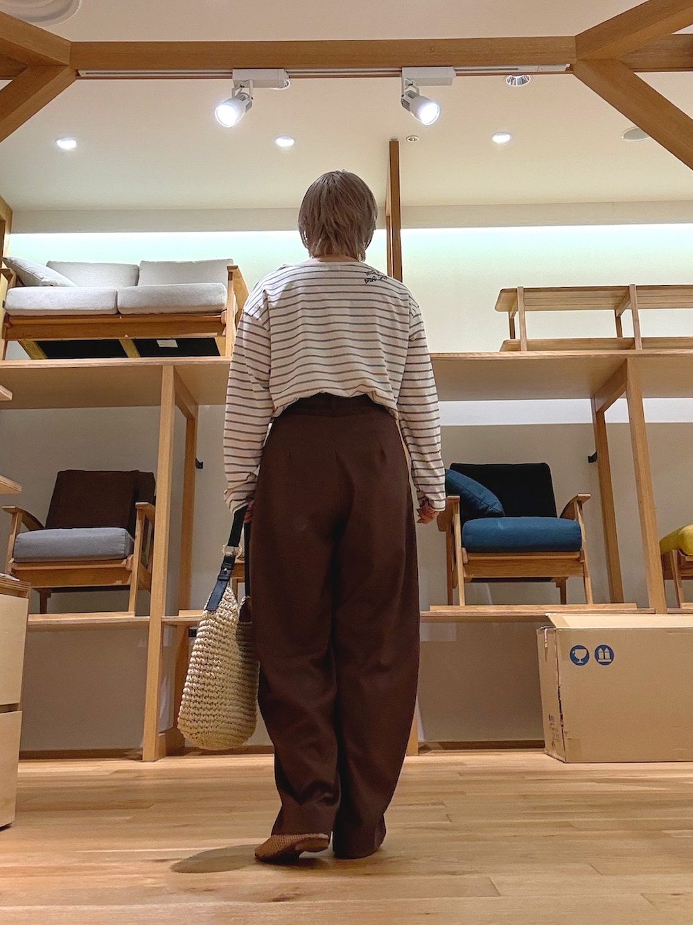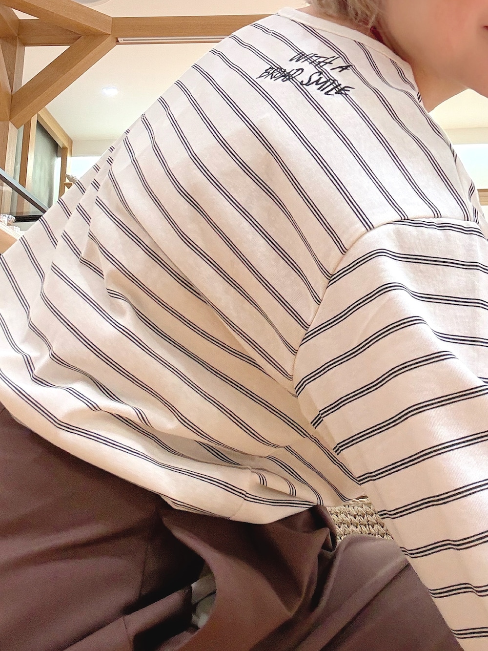 ブラウン×アイボリーのやわらかい配色で、大人っぽく抜け感のある印象に。