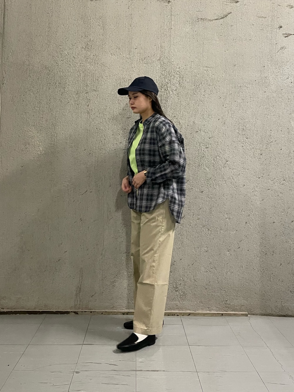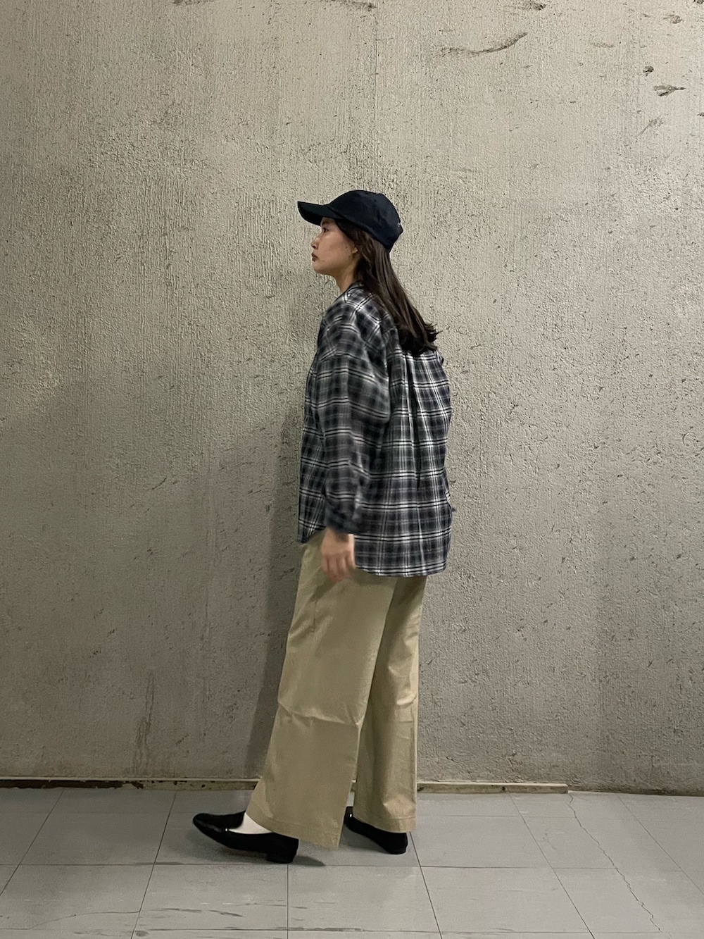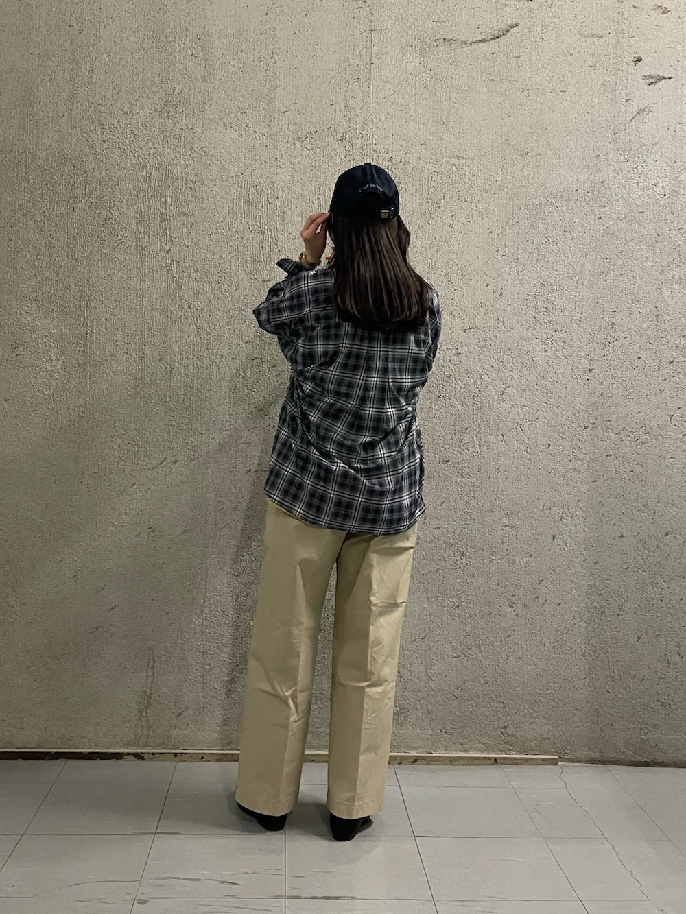 “ダッドライク”なムードを意識して、チェックシャツやキャップで抜け感のあるバランスに🧢