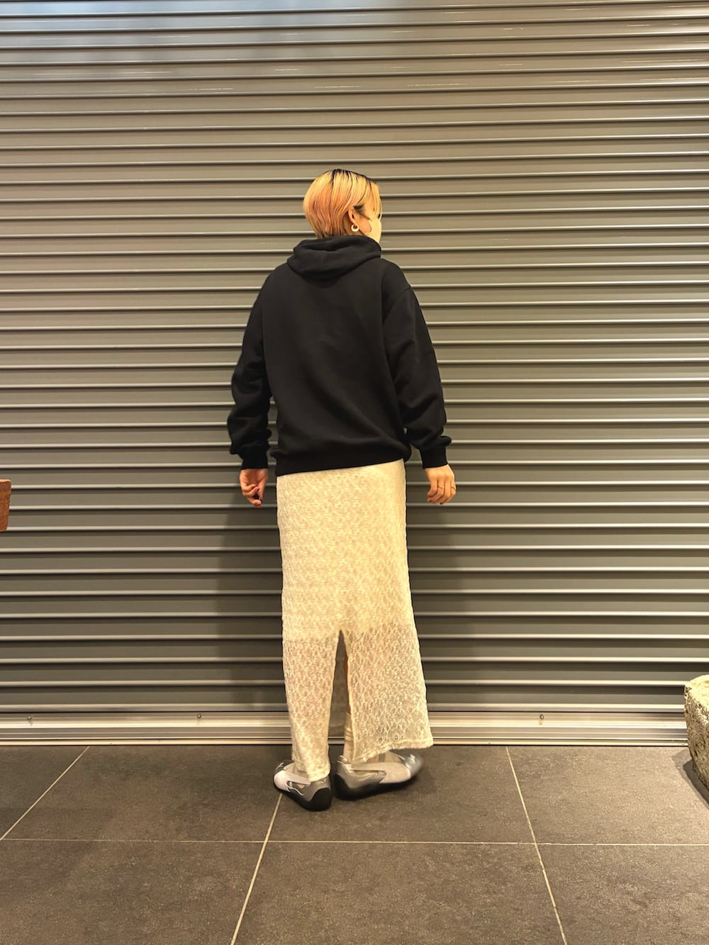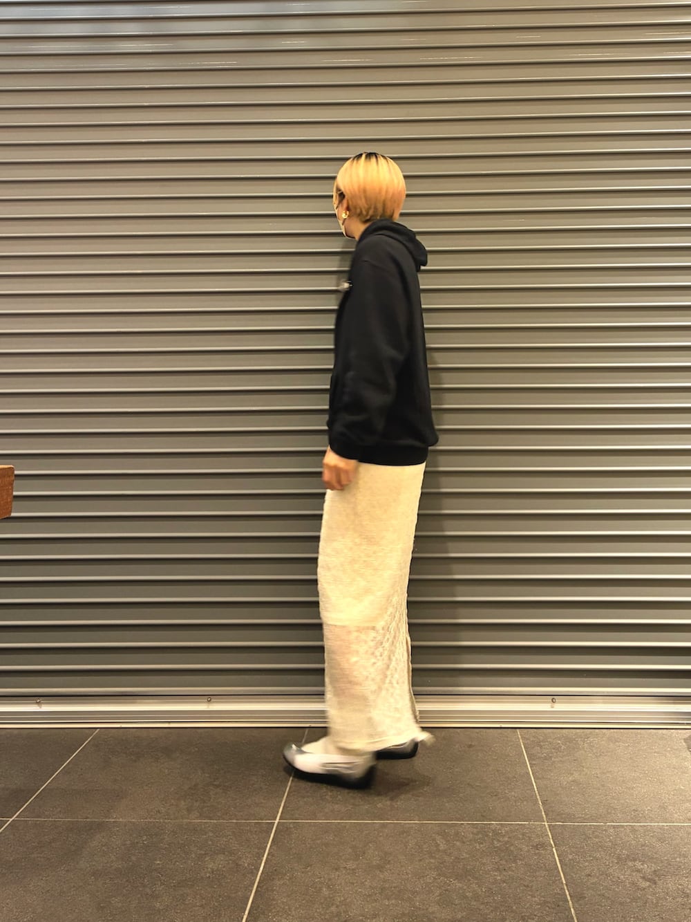 ストンと落ちるセンスオブプレイスのスカートとパーカーの相性抜群です!!