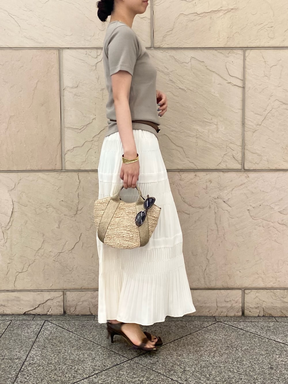Tシャツ合わせでも上品な印象です。
