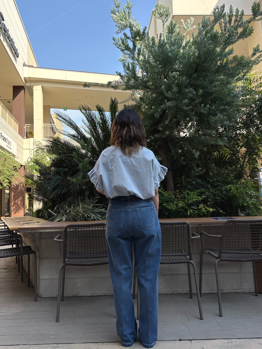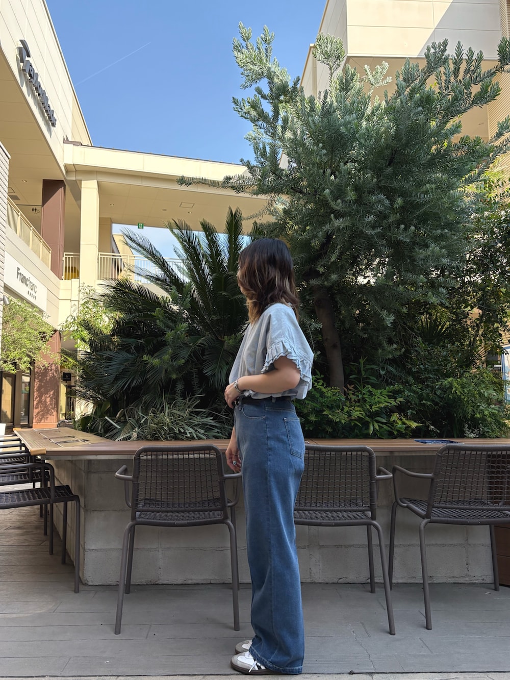 スカート合わせも可愛いですが、甘さが気になる方はシンプルなボトムスデニムなどと合わせると大人カジュアルなコーデに仕上がります♪